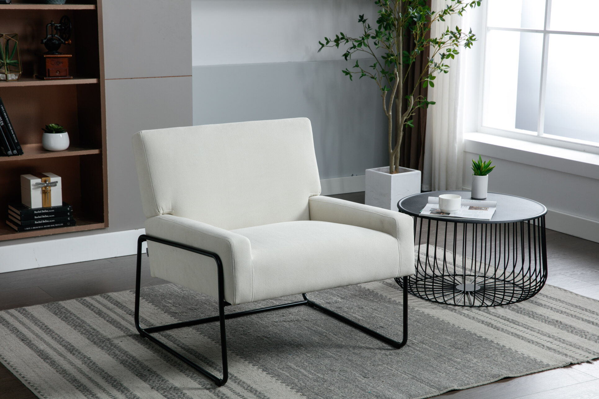 Oversized Accent Chair with Metal Frame, Modern Industrial Slant Armchair with Premium High Density Soft Cushion, Single Leisure Chair for Living Room Bedroom, Beige