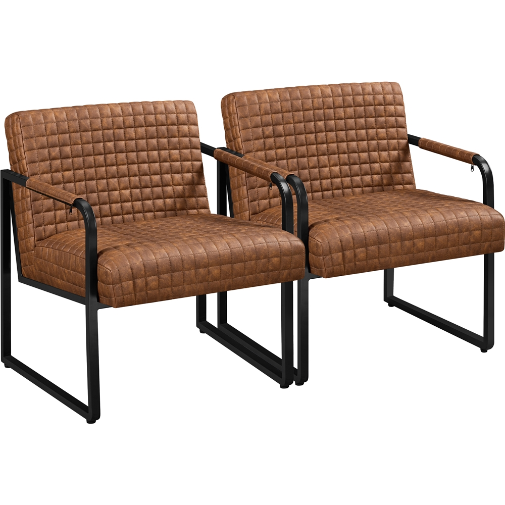 Topeakmart 2PCS Modern Faux Leather Accent Chair with Metal Frame for Living Room, Retro Brown
