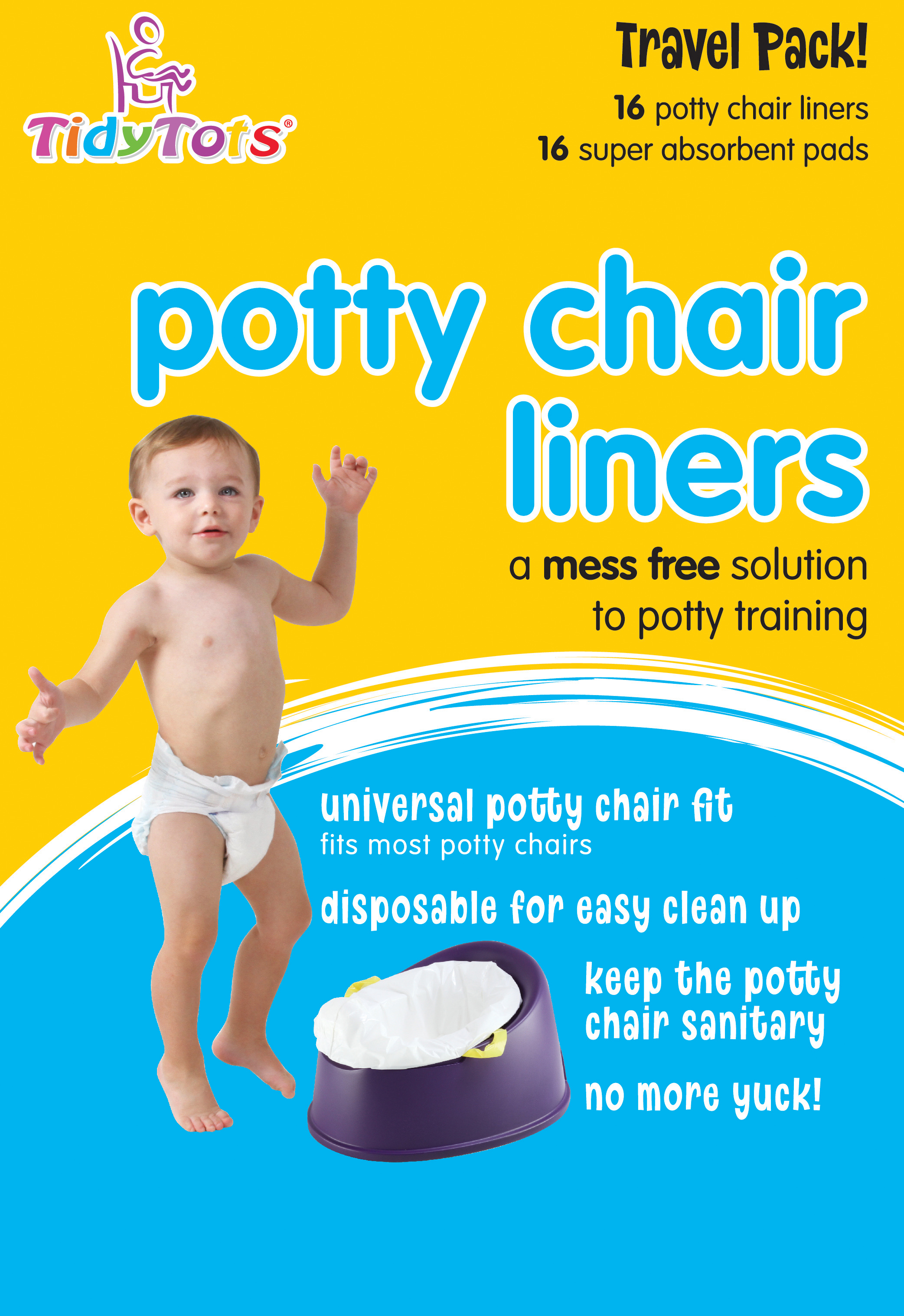 Tidy Tots Portable Potty Chair Liners, Disposable Potty Seat Covers, 32 Liners and 32 Super-Absorbent Pads, XL