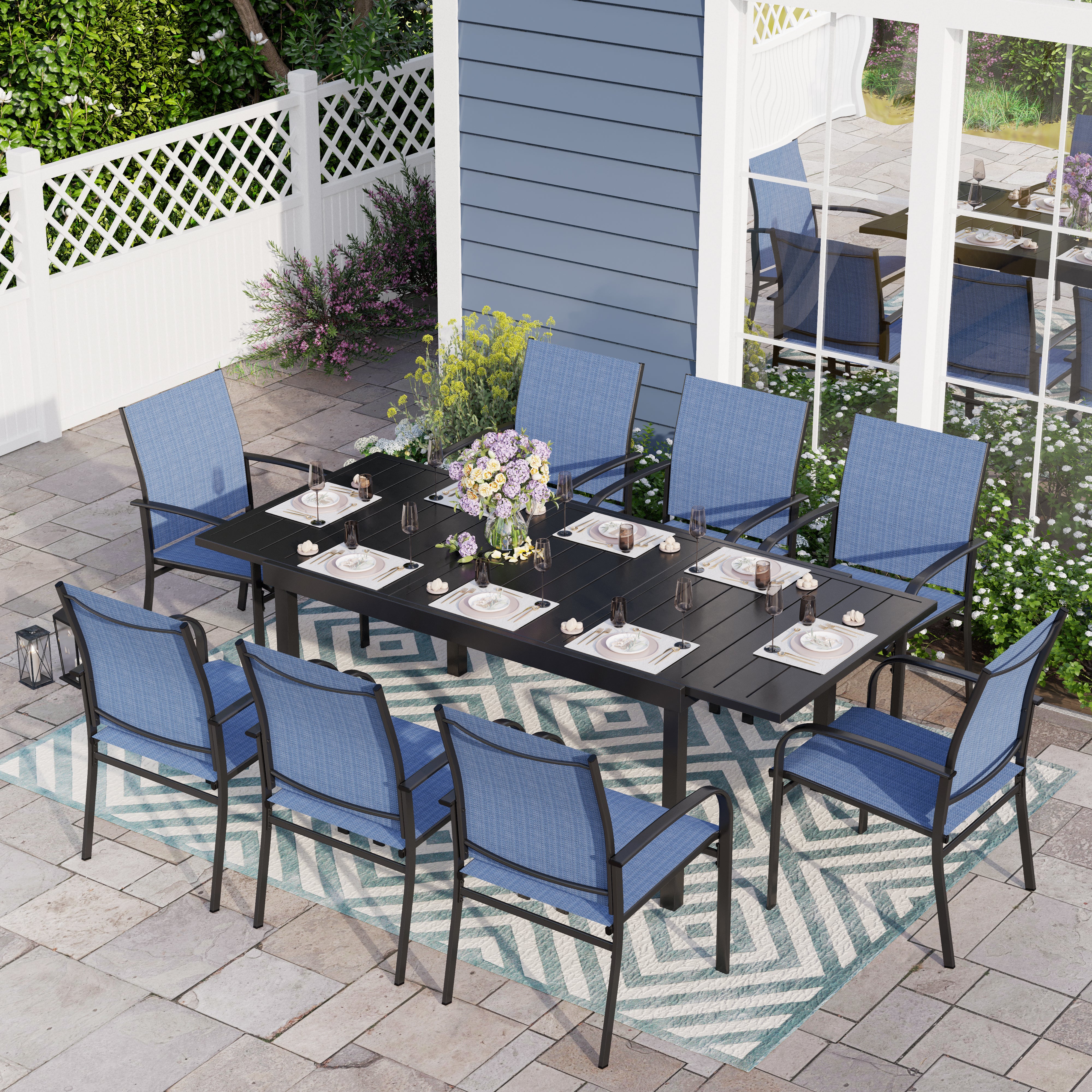 Sophia & William 9 Piece Patio Metal Dining Set Expandable Patio Dining Table and 8 Blue Textilene Chairs