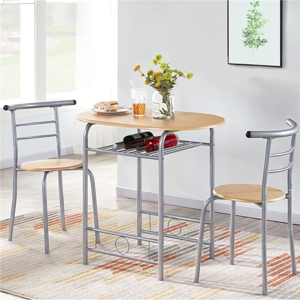 Alden Design 3pcs Modern Dining Set with Round Table and 2 Chairs, Multiple Colors