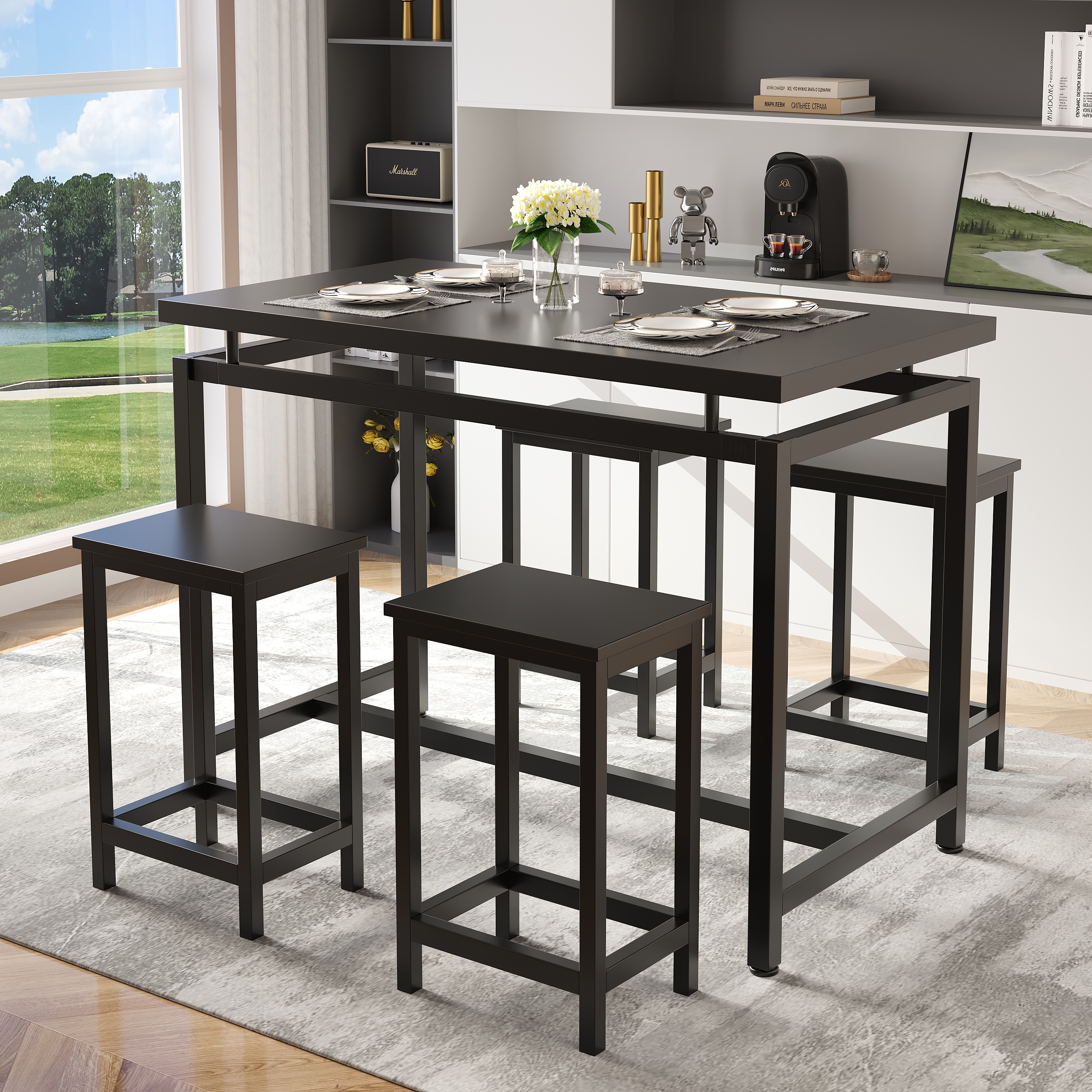 Costway 5PCS Dining Set Metal Table & 4 Chairs Kitchen Breakfast Furniture Black