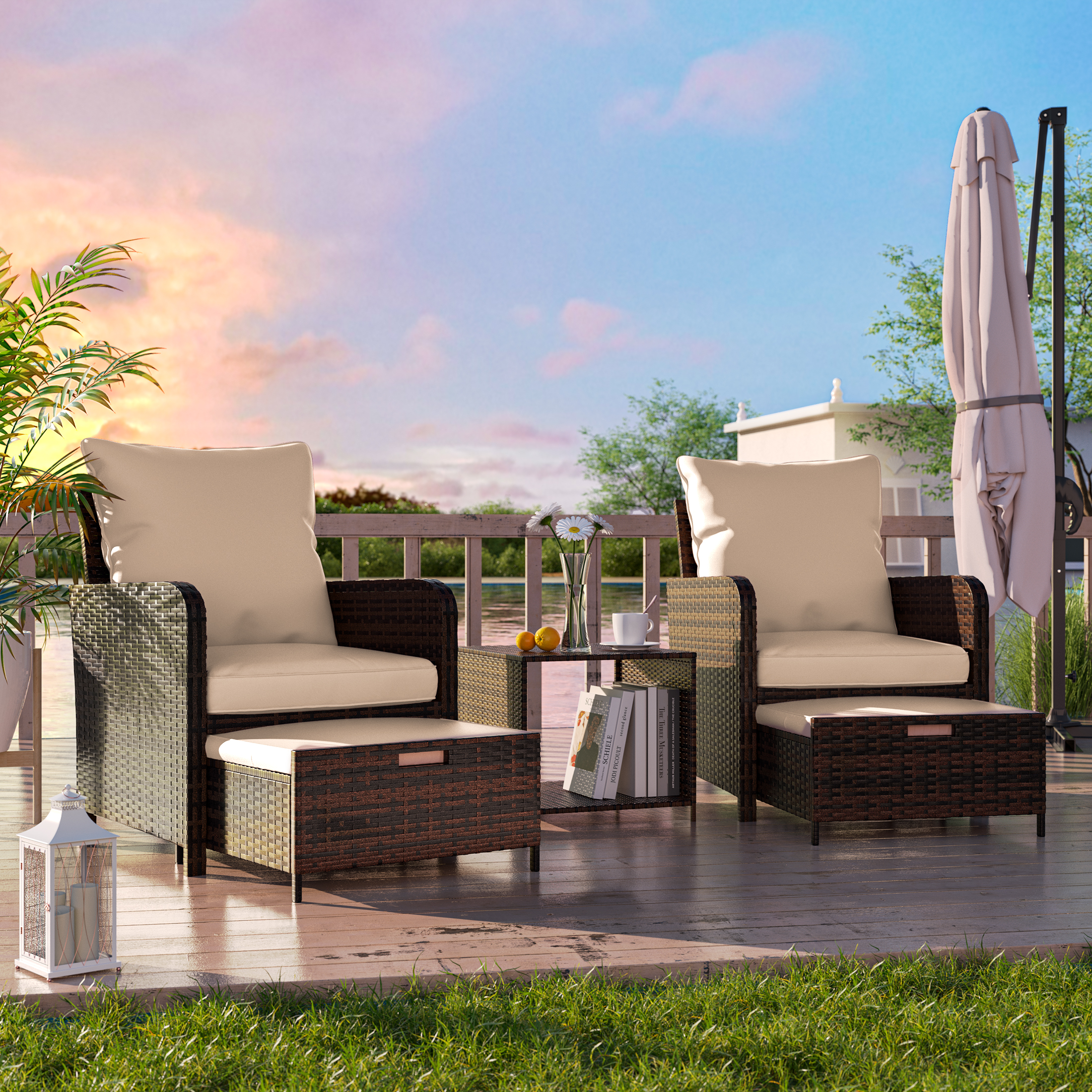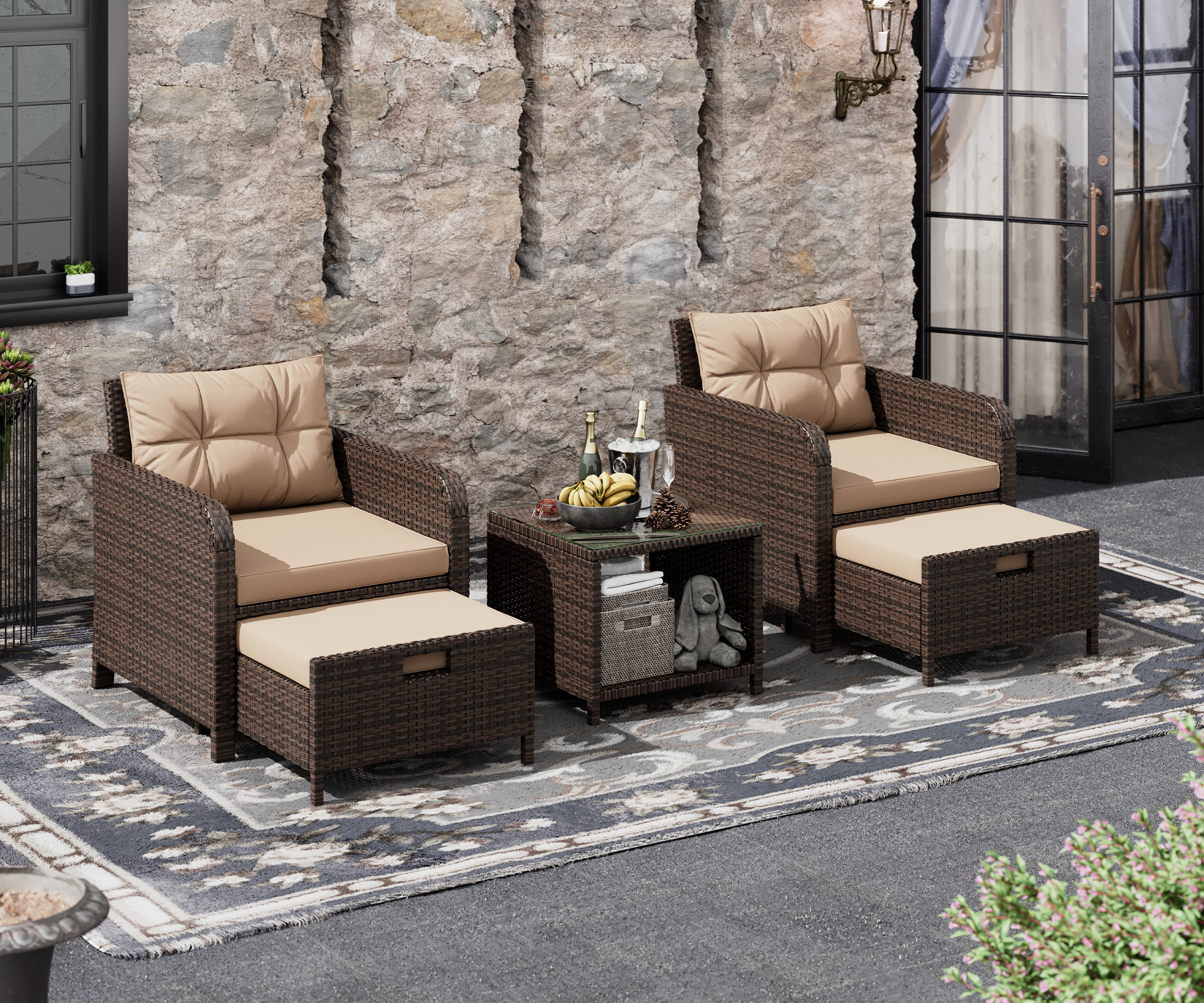 UDPATIO Balcony Furniture 5 Piece Patio Furniture Set, Outdoor Patio Chair , Khaki
