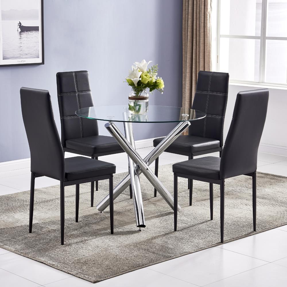 Ktaxon 5 Piece Round Dining Table Set, Modern Kitchen Table and Chairs for 4 Person Clear Tempered Glass Top