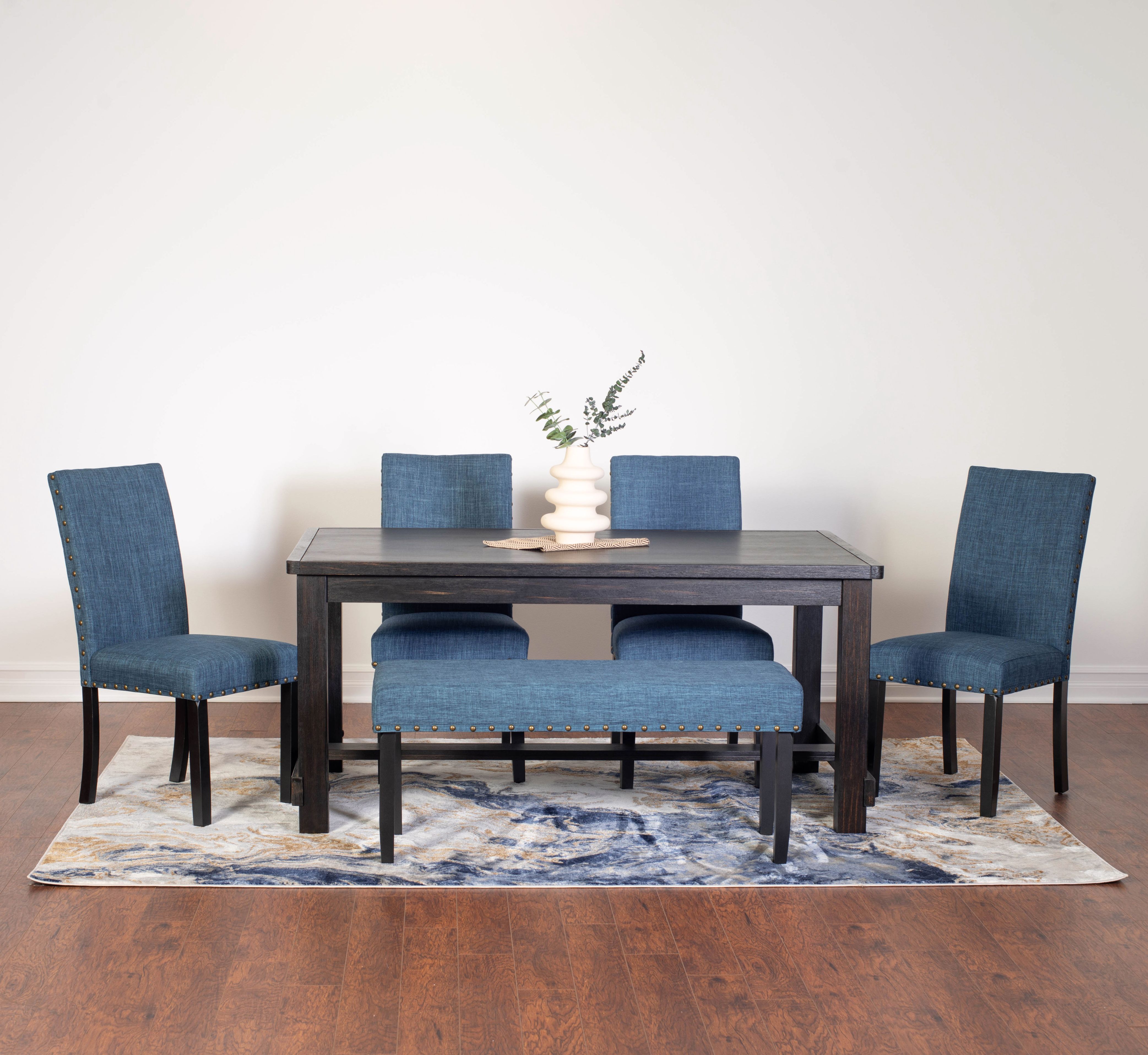 Roundhill Furniture Muzzi Contemporary 6-Piece Dining Set, Dining Table with 4 Stylish Chairs and a Bench, Blue