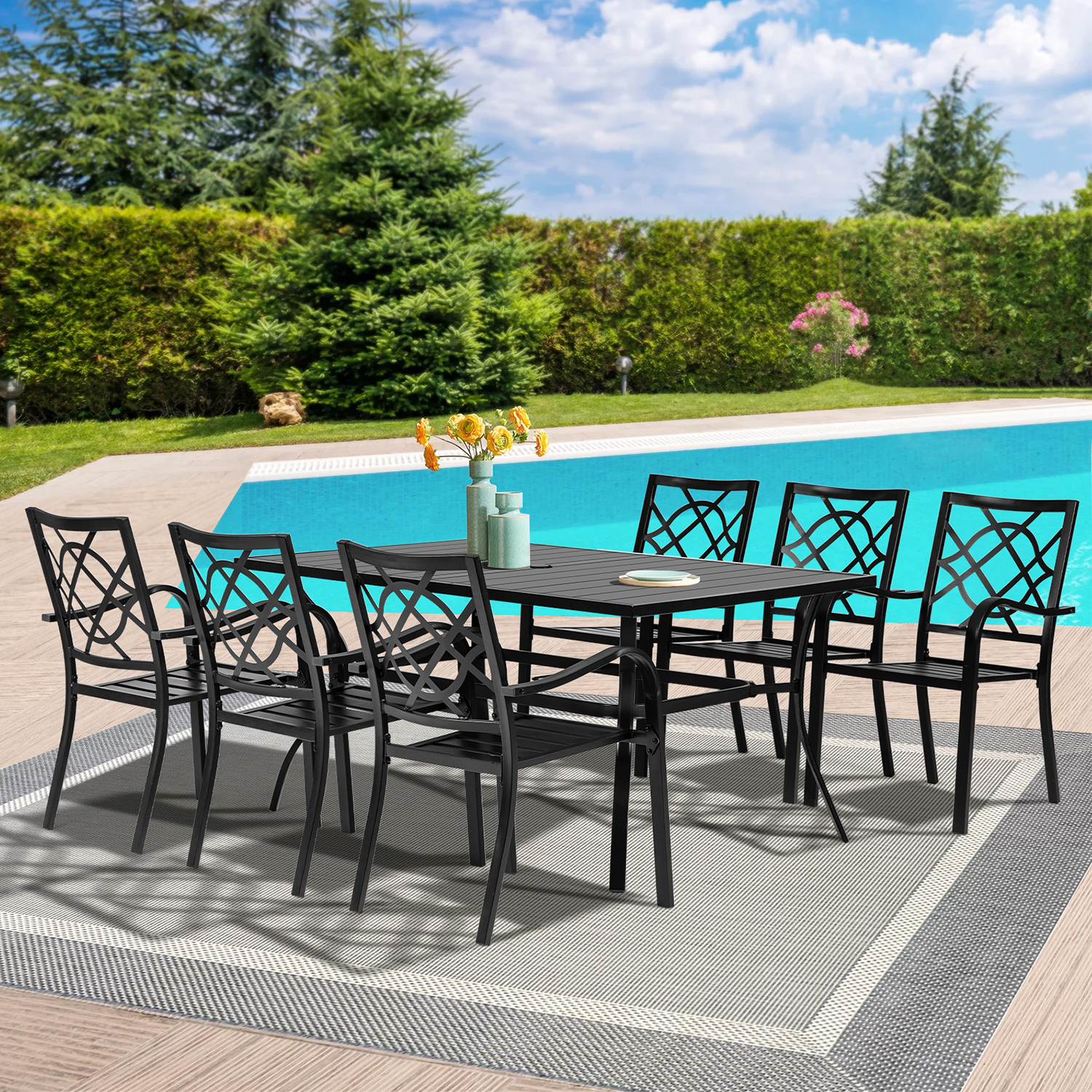 SOLAURA 7-Piece Outdoor Patio Dining Set with Stackable Metal Chairs and Rectangular Table for 6 Persons, Black
