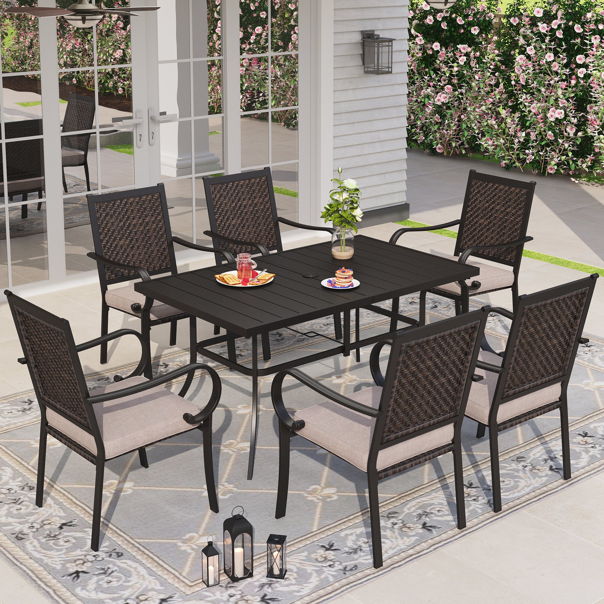 Sophia & William 7 Pieces Outdoor Patio Dining Set Wicker Rattan Chairs and Rectangular Steel Table for 6-person