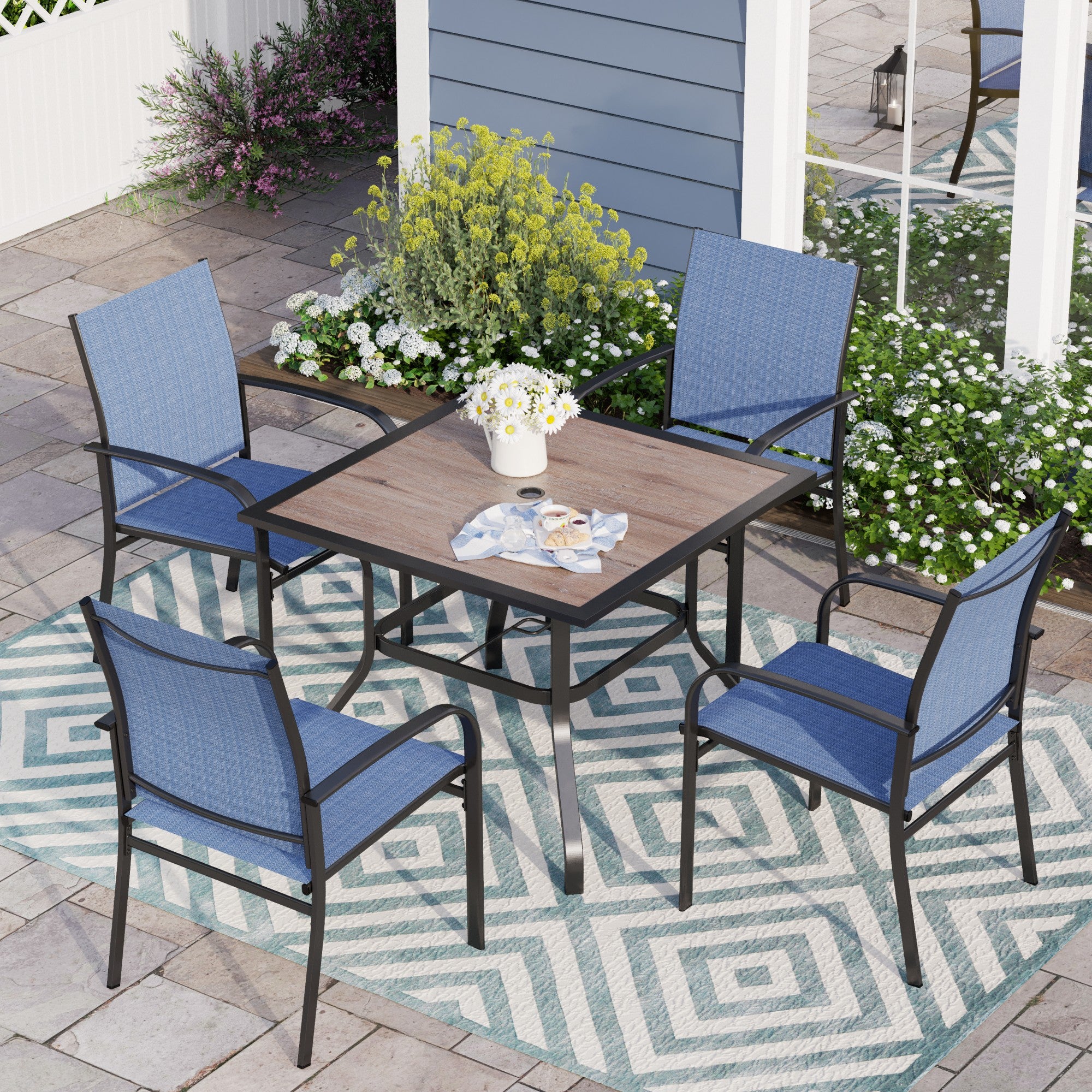 Sophia & William 5 Piece Patio Dining Set Patio Dining Table and 4 Blue Textilene Chairs