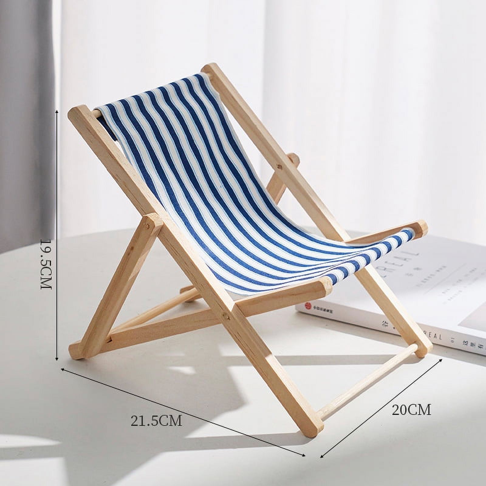 2Pcs Mini Deck Chairs Foldable Wooden Beach Chair Miniature Furniture Photography Prop
