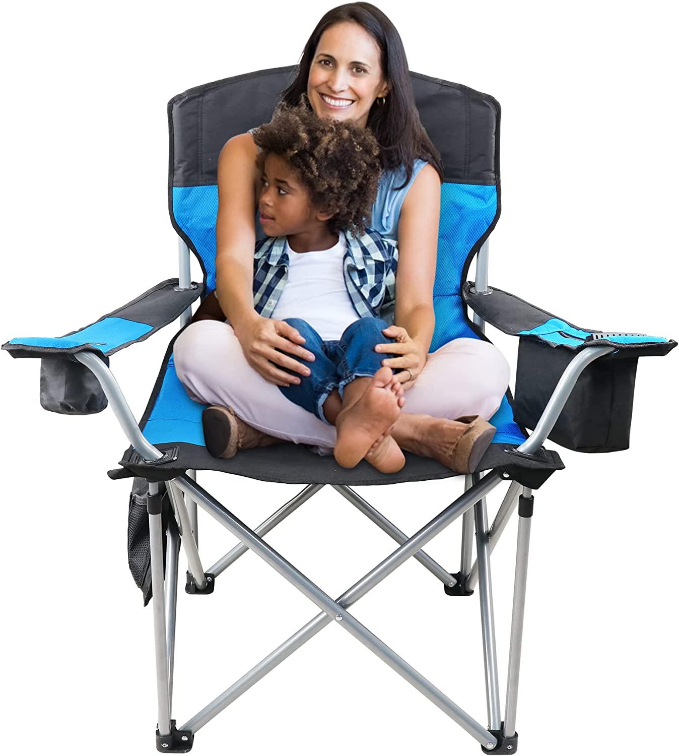 Toocust Beach Chair for Adults, Oversized Camping Chair 500lb with Armrest, Cooler Bag, Side Pocket, Cup Holder