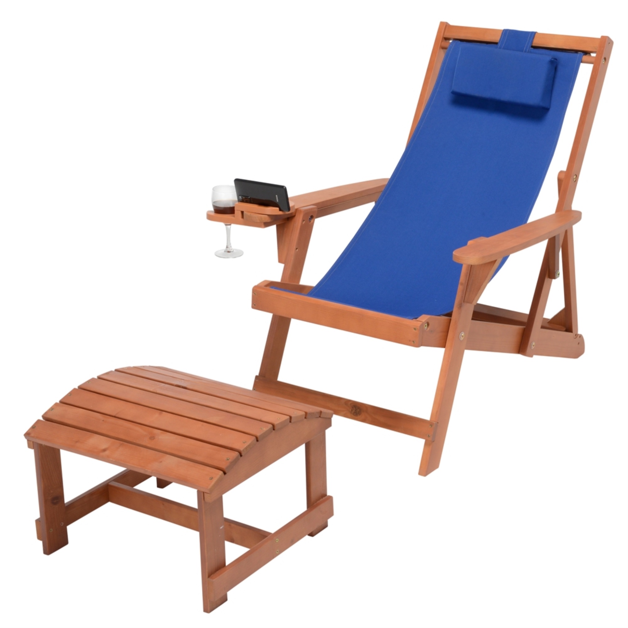 W Unlimited Romantic Collection Canvas Sling Chair with Cup and Wine Holder and Ottoman