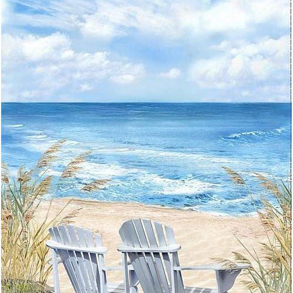 24 X 44 Panel Beach Chairs Sand Lake Ocean Breeze Blue Cotton Fabric Panel (D483.45)