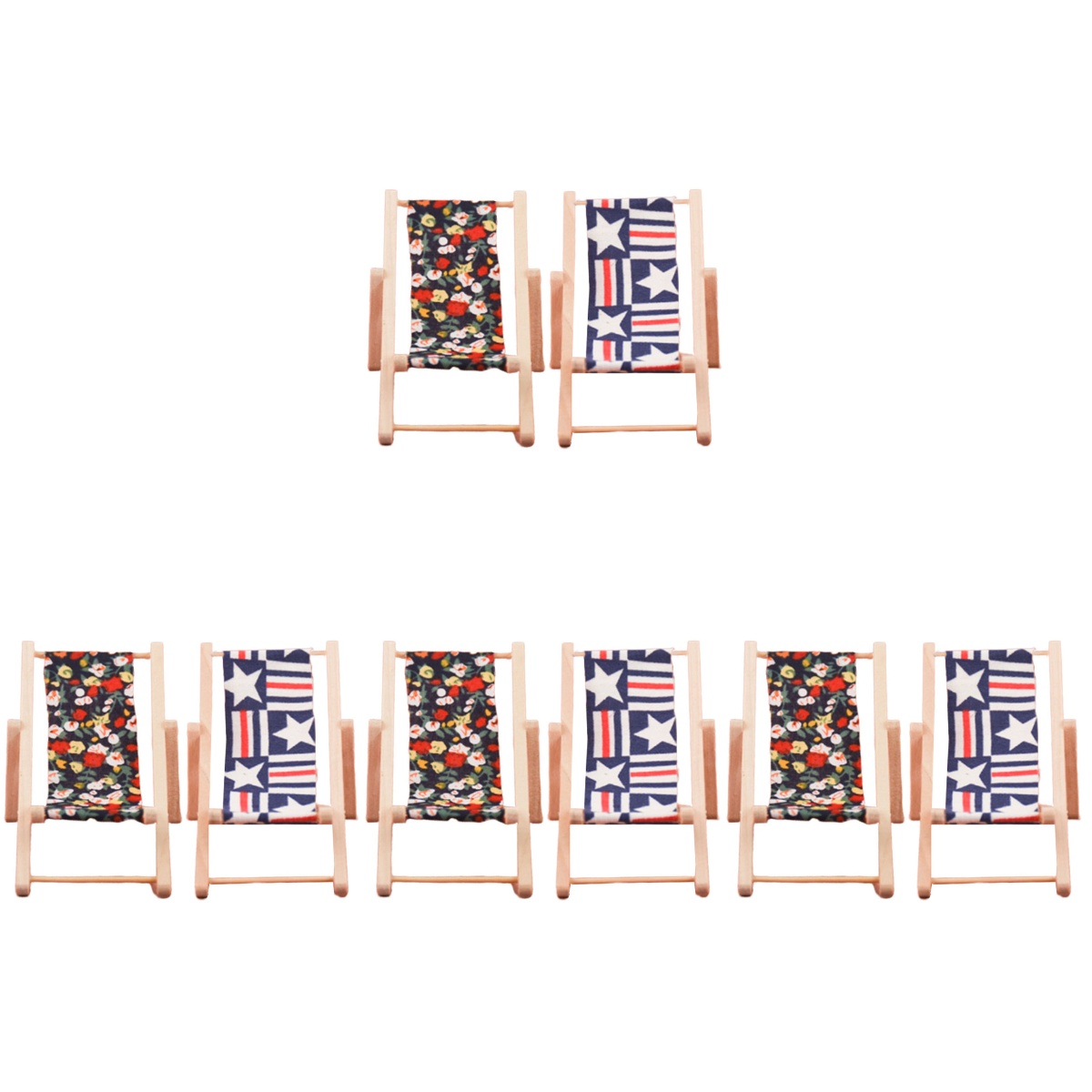 8 pcs Mini Beach Chair Mini Wooden Chair Beach Chair Model Mini Beach Chair Lounge Chair 1:12