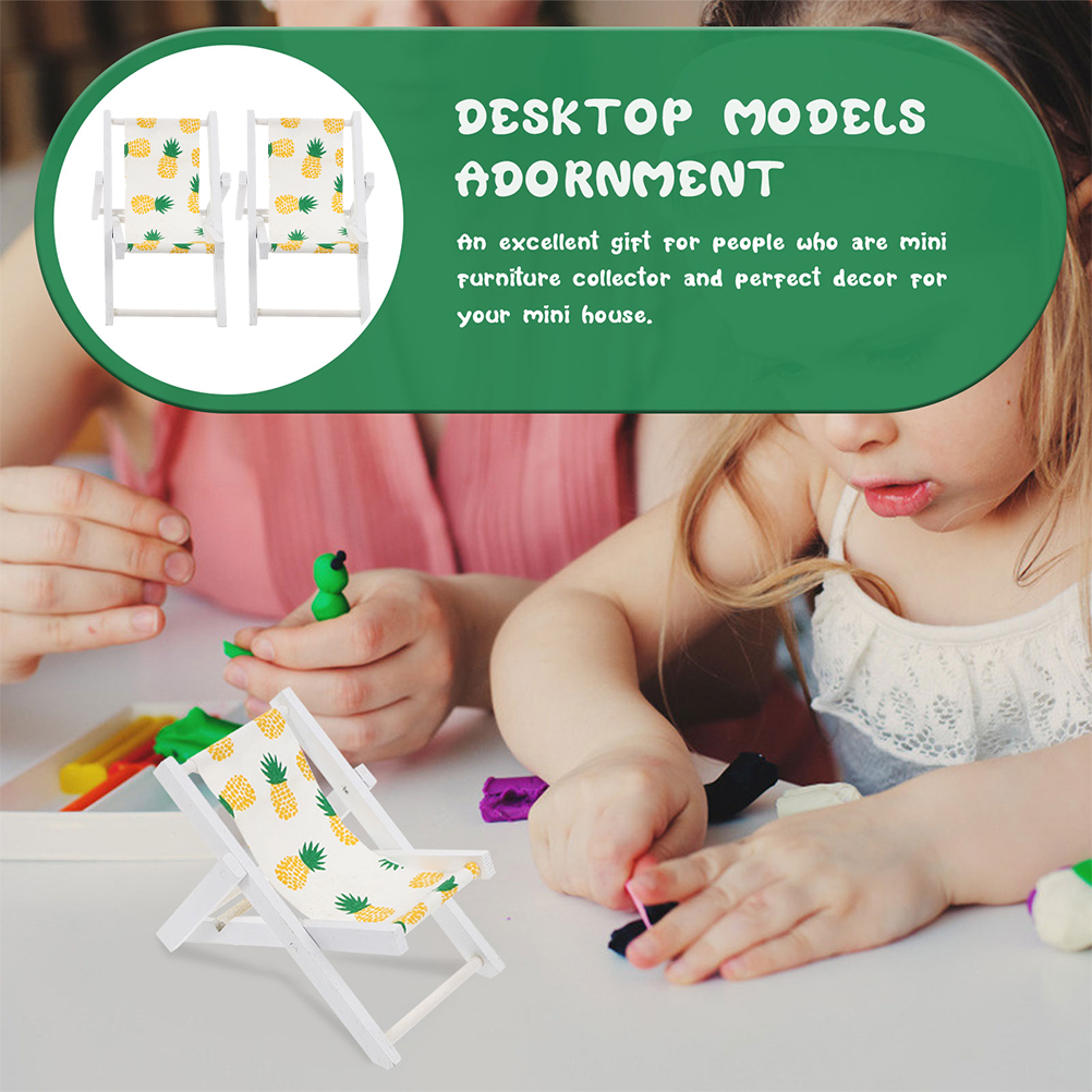 2 Pcs Mini Wooden Beach Chair Mediterranean Style Pineapple Flamingo Pattern Mobile Phone Holder Mini Adornment Lounge Deck Chair