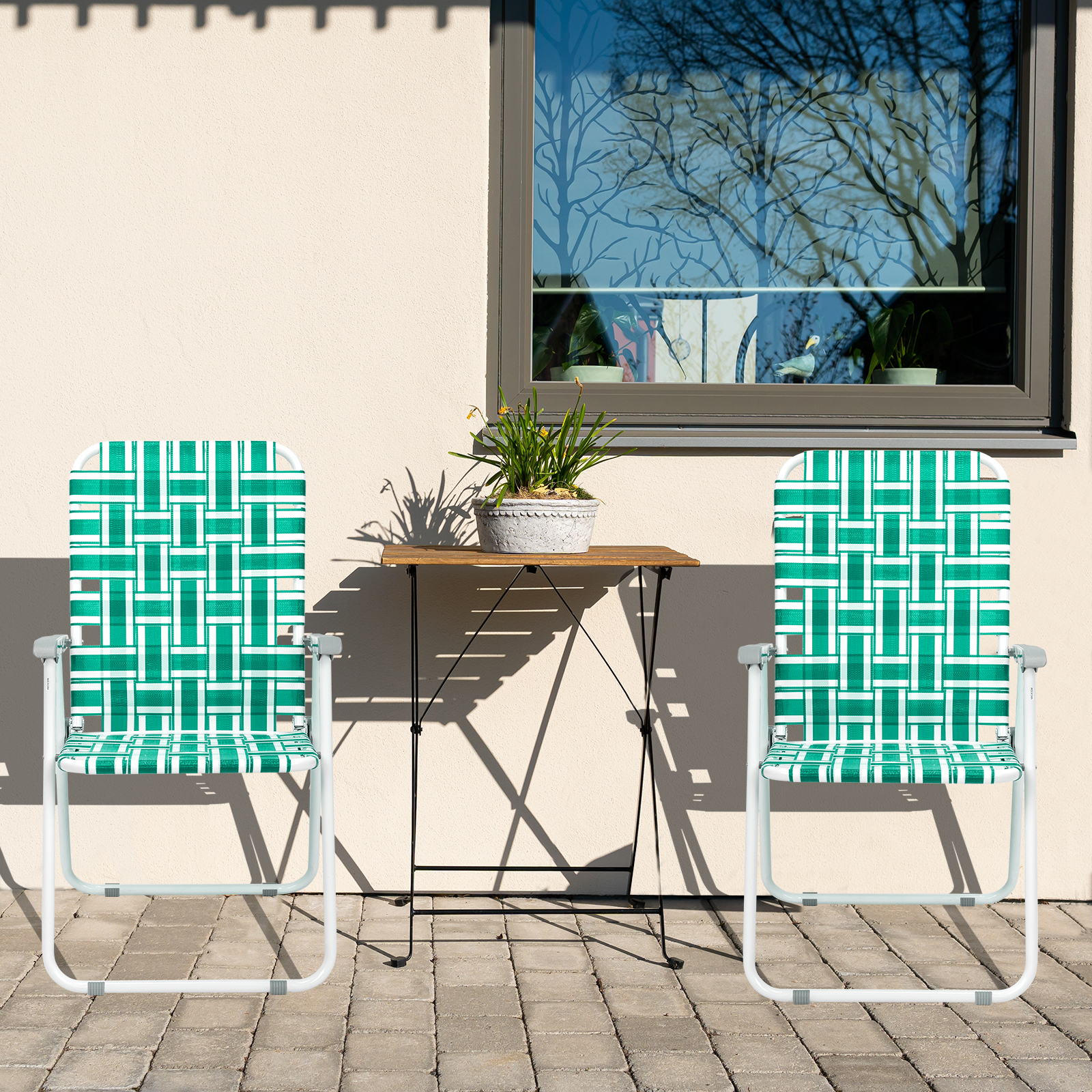 Zimtown 2 Pack Lawn Chair Set Patio Folding Web Outdoor Beach Chair Portable Camping Chair(Green)