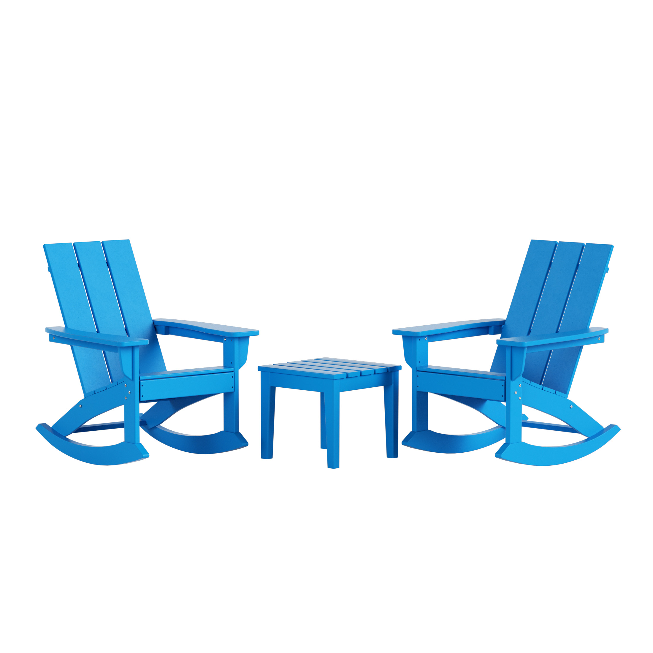 WestinTrends Ashore 3 Piece Patio Rocking Chair Set, All Weather Poly Lumber Adirondack Rocker Bistro Set Porch Patio Chairs Set of 2 with Large Side Table, Pacific Blue