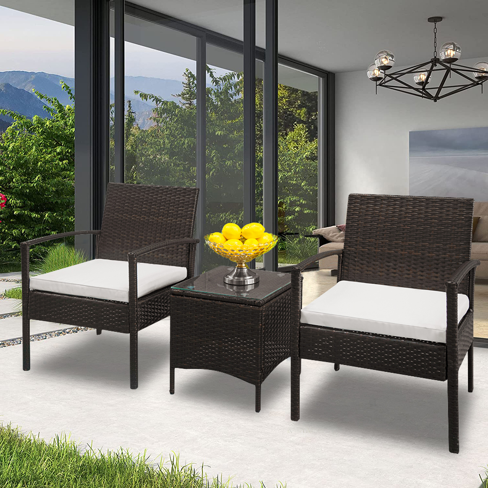Patio Furniture Sets Clearance, 3 Piece Wicker Patio Set With Glass Dining Table, Modern Bistro Patio Set Rattan Chair Conversation Sets with Coffee Table for Backyard, Porch, Garden, Poolside, L4777