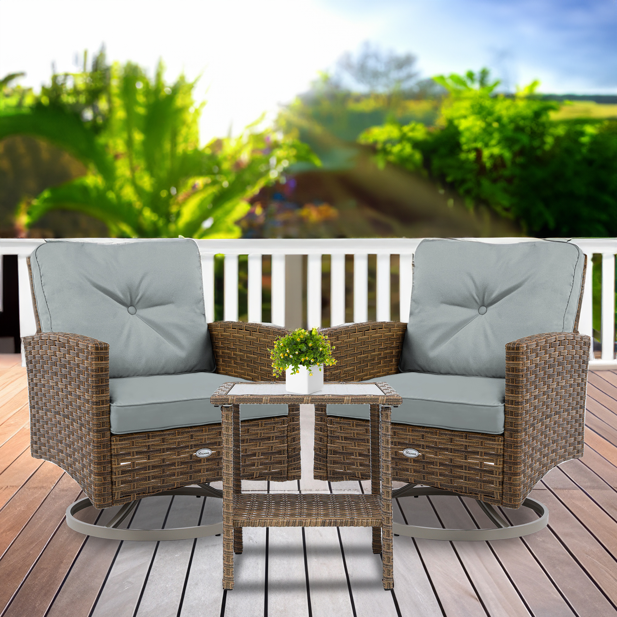 3 Piece Outdoor Wicker Patio Bistro Set,360 Degree Swivel Rocking Chair Patio Chair Patio Furniture With Premium Seat Cushion,Space Saving Patio Furniture For Patio,Garden
