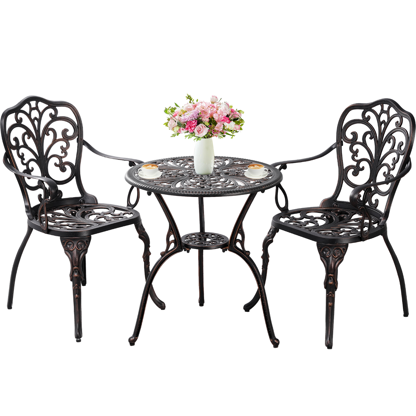 Withniture 3-Piece Bistro Table and Chairs Set of 2 Outdoor Furniture Patio Bistro Set, Bronze