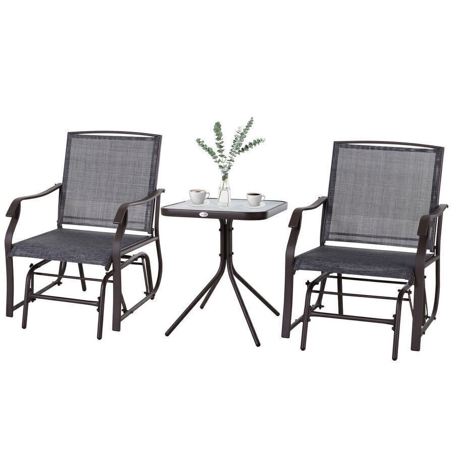 Outsunny 3pcs Outdoor Sling Fabric Rocking Glider Chair with Table Set, Gray