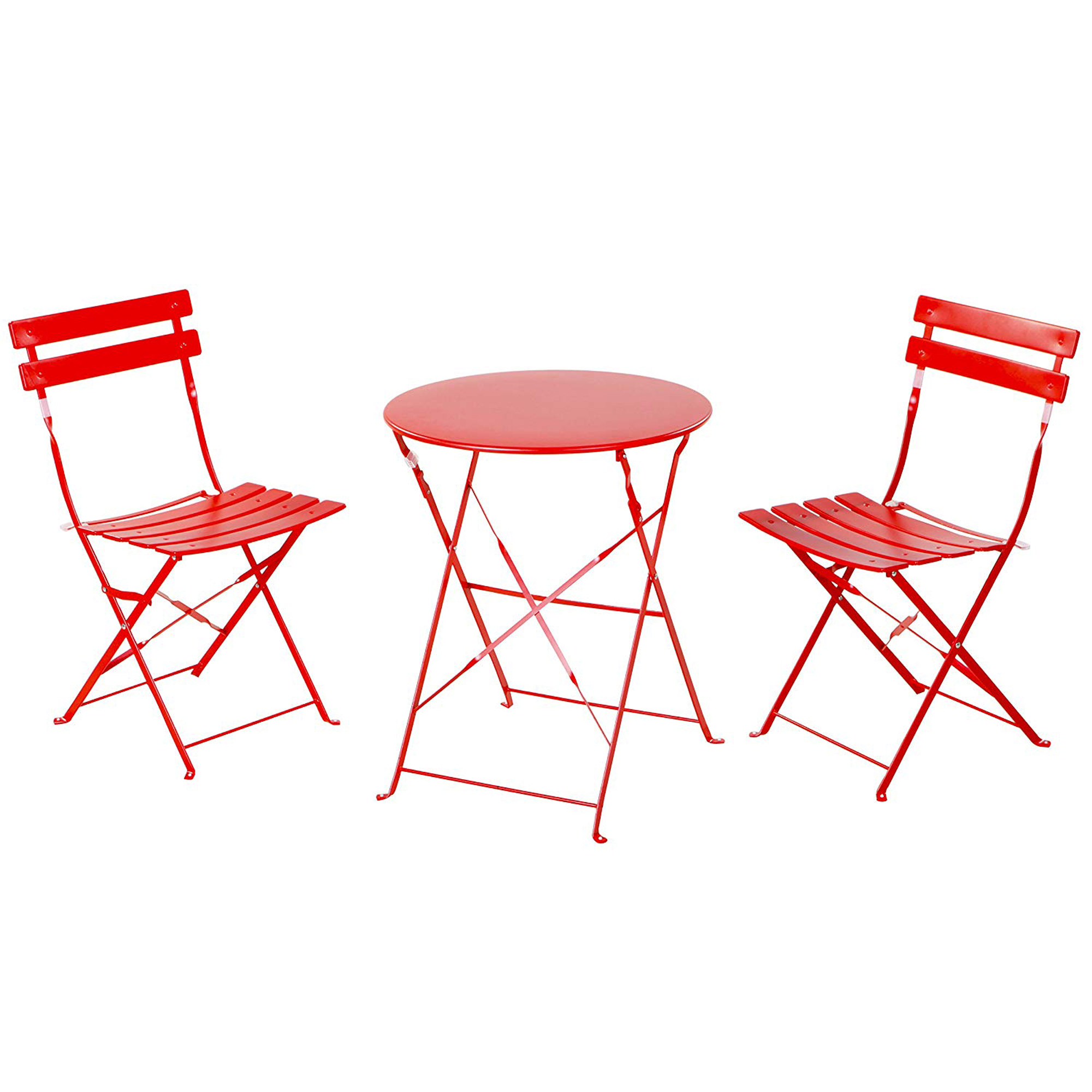 Mondawe 3-Piece Bistro Set Folding Outdoor Patio Furniture Metal Folding Round Table and Chair for Yard/Garden/Balcony/Poolside,Red