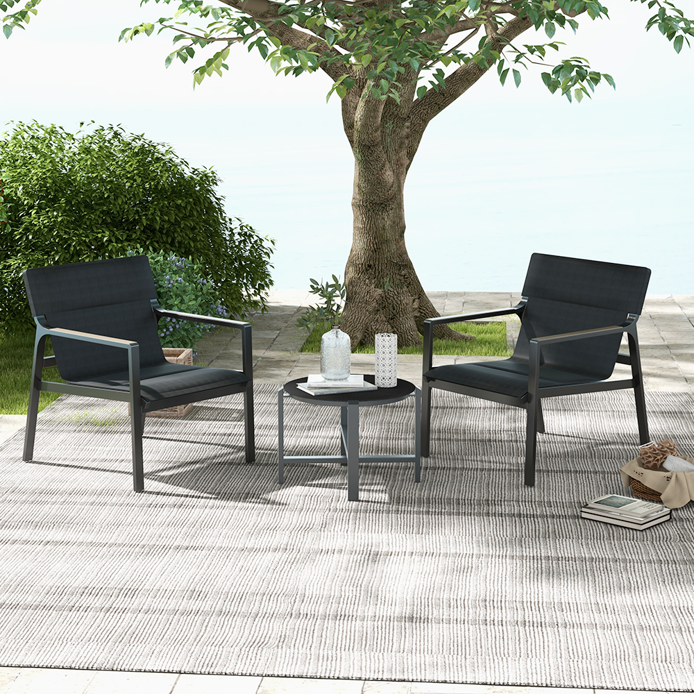 Grand Patio Outdoor Indoor 3-Piece Bistro Set with Mesh Sling Armchairs, Conversation Set with Side Table, Weather-Resistant Aluminum, Mesh Sling, Black