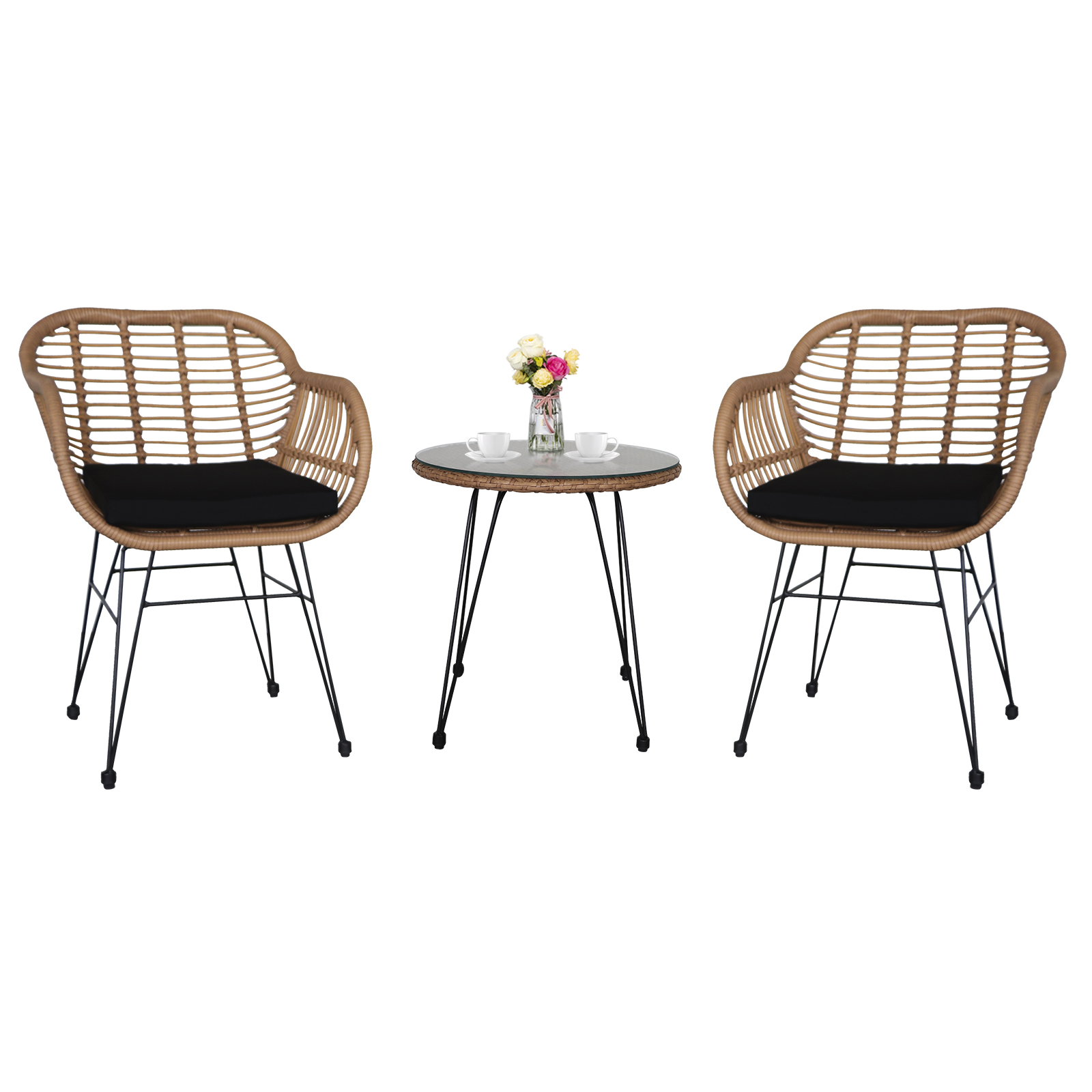 GoDecor Bistro Patio Rattan Furniture Set, Nature, 3-Piece w/ Table and Chair, Flaxen Yellow