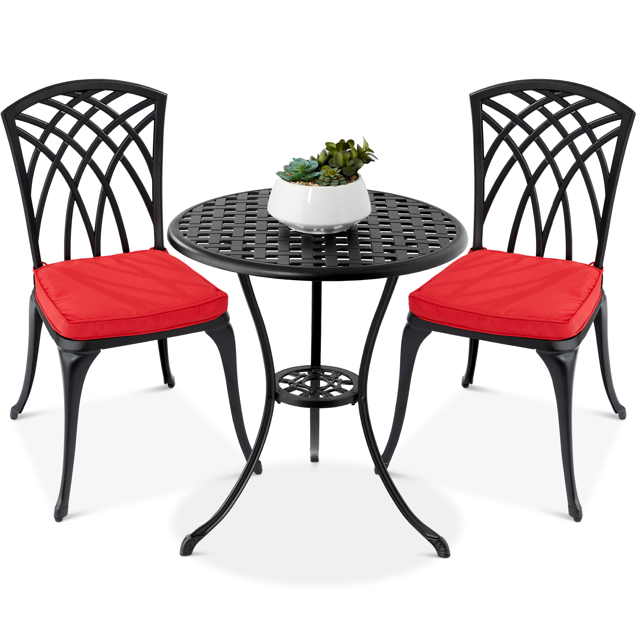 Best Choice Products 3-Piece Aluminum Patio Bistro Set w/ Umbrella Hole, 2 Chairs, Polyester Cushions - Black/Red