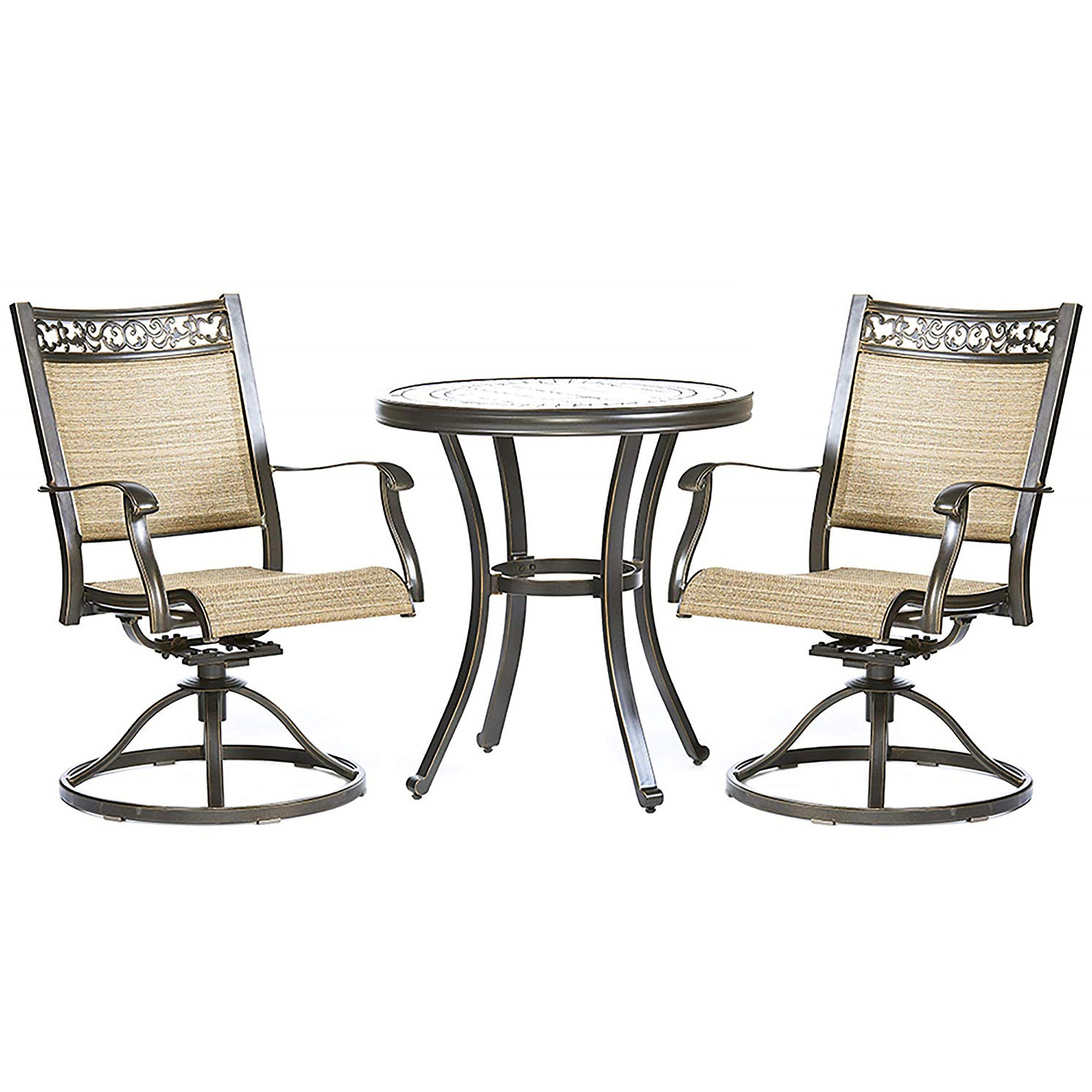 3 Piece Bistro Set, Handmade Contemporary Round Table Swivel Rocker Chairs Garden Backyard Outdoor Patio Furniture