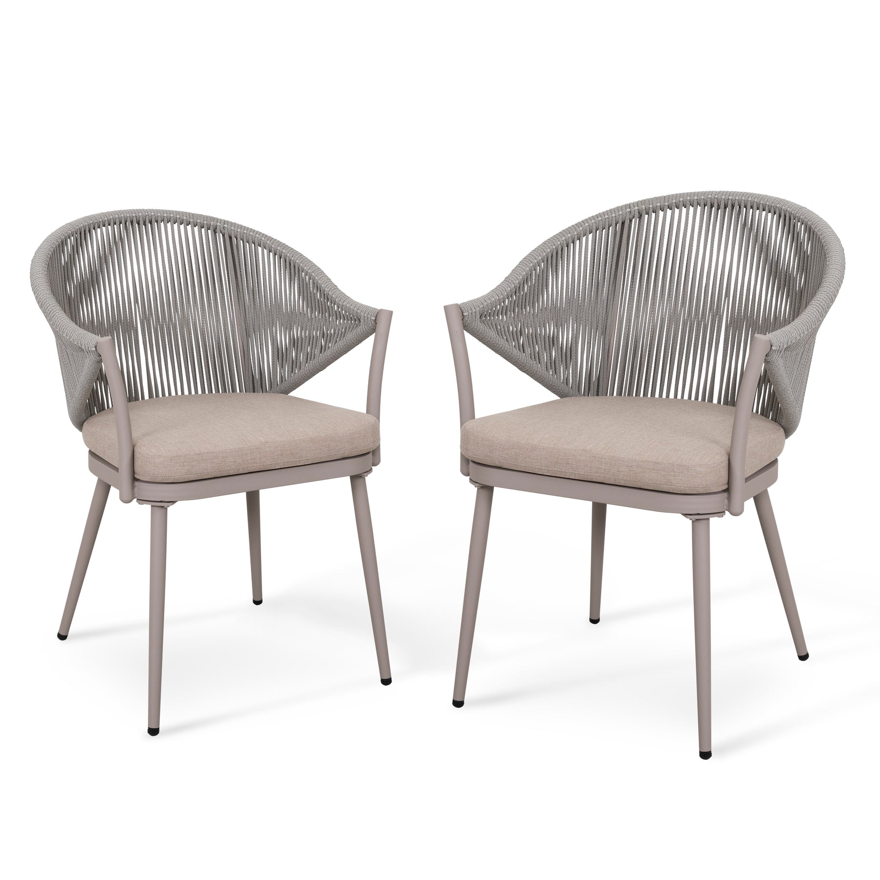 Nuu Garden 2 Piece Outdoor Aluminum Chair Set, Woven Rope Conversation Chairs with Seat Cushions, Beige