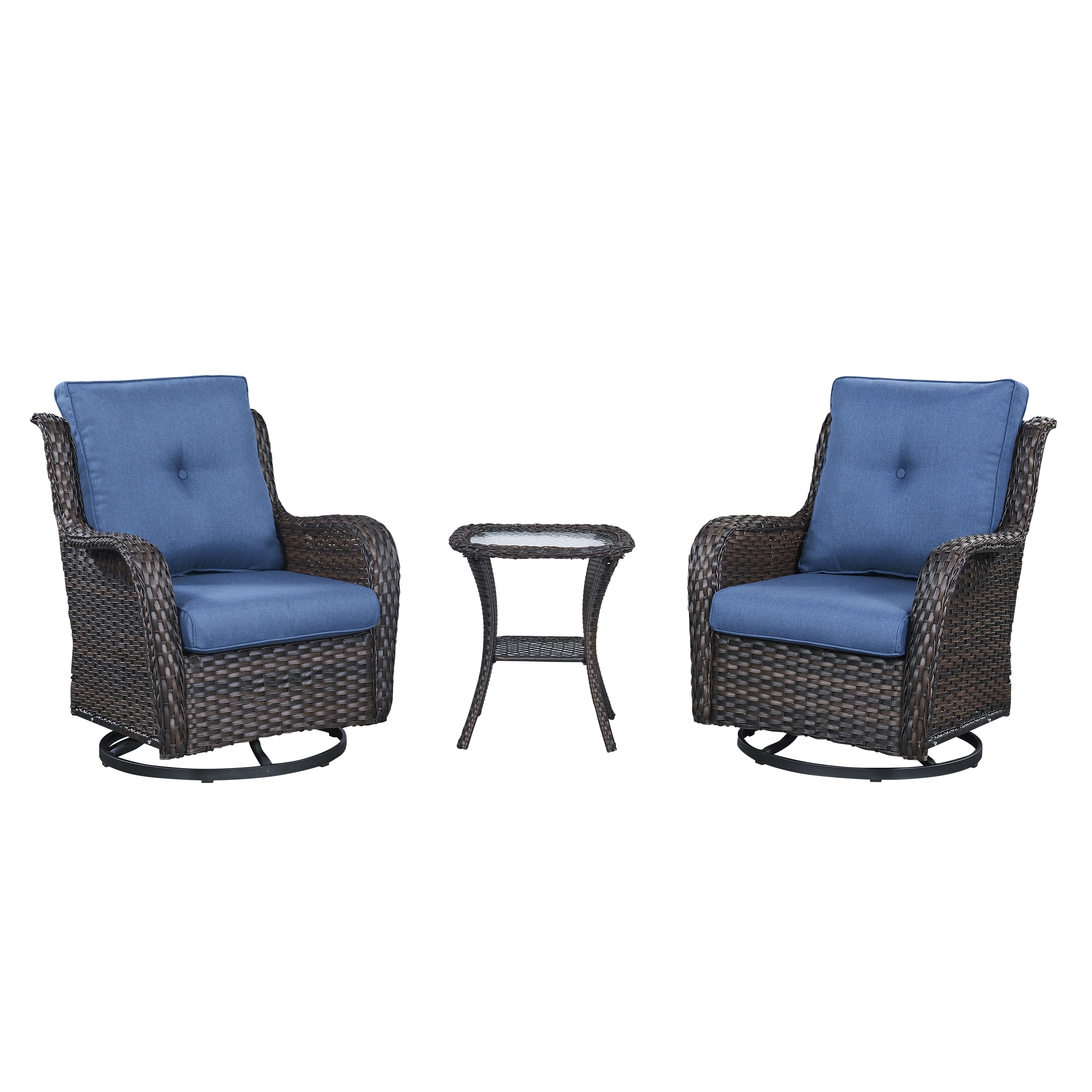 Pocassy 3-Piece Outdoor Swivel Bistro Set, Wicker Rocking Chairs Mix Grey/Blue