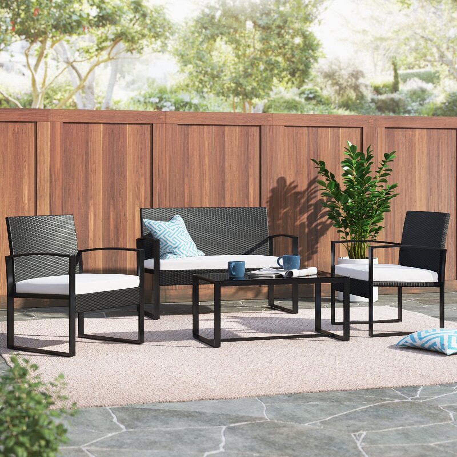 Lacoo 4 Piece Patio Furniture Cushioned PE Rattan Bistro Chairs Set of 3 with Table