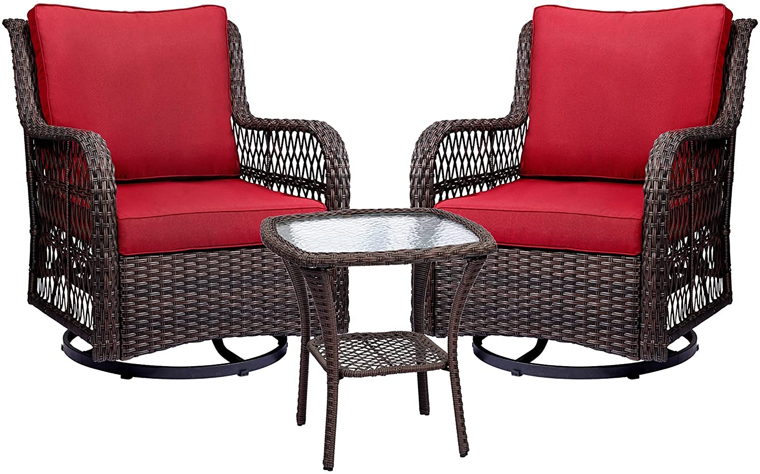 Meetleisure 3 Pieces Outdoor Patio Furniture Wicker Bistro set with Swivel Chairs and Side Coffee Table for Backyard
