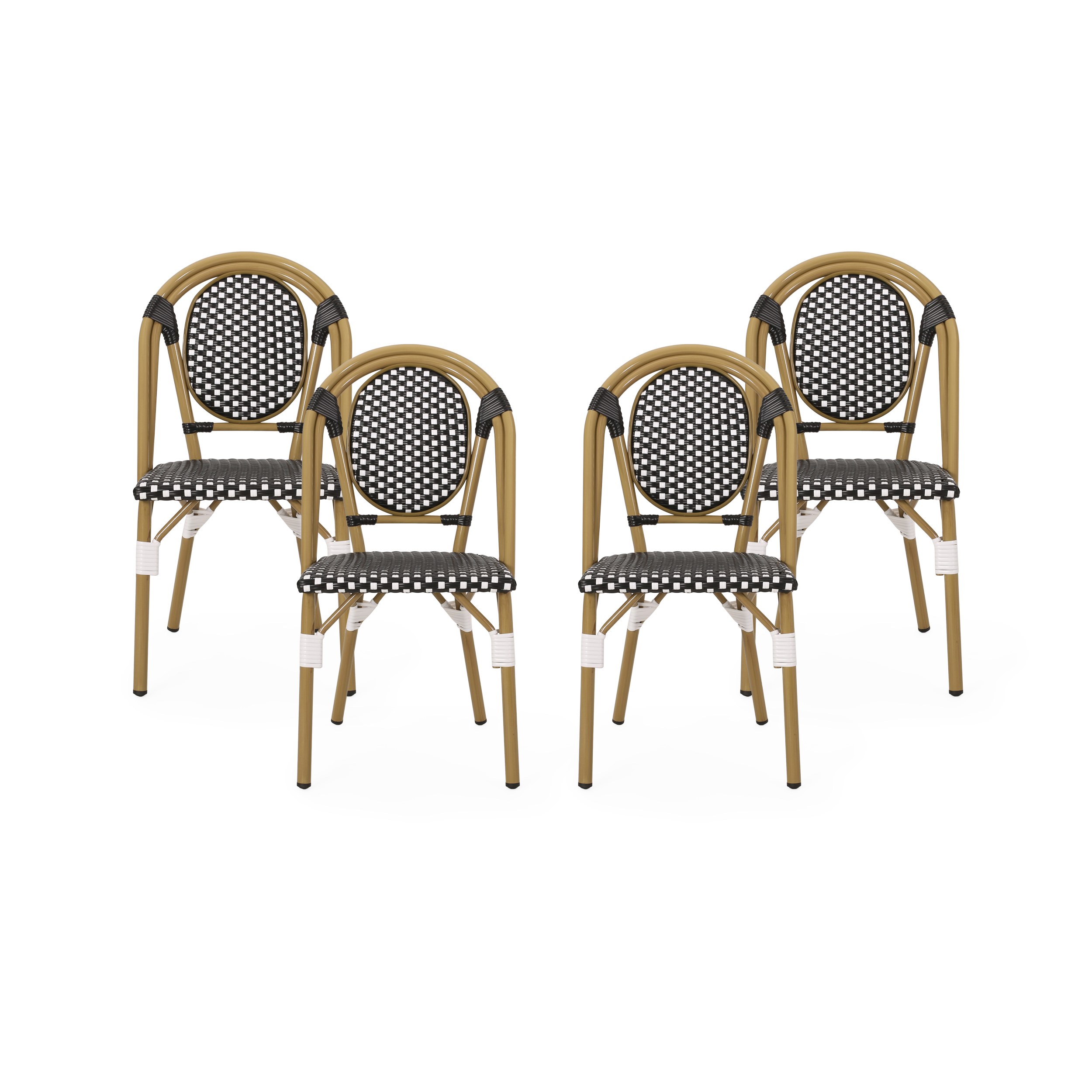 Drew Outdoor French Bistro Chairs, Set of 4, Black, White, Bamboo Finish
