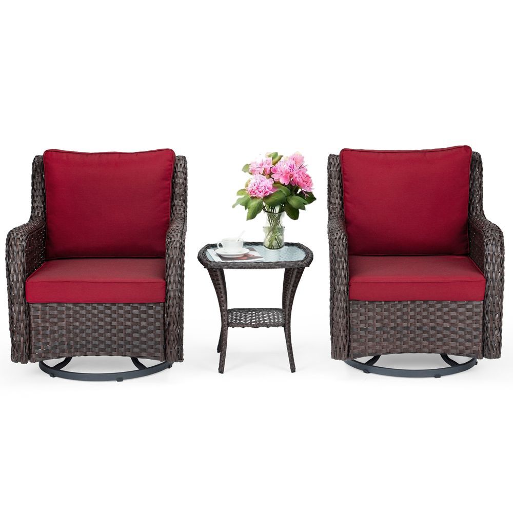 Patio Porch Furniture Sets Clearance ,3 Pieces Outdoor Wicker Swivel Patio Chairs Set ,Red Wicker/Rattan
