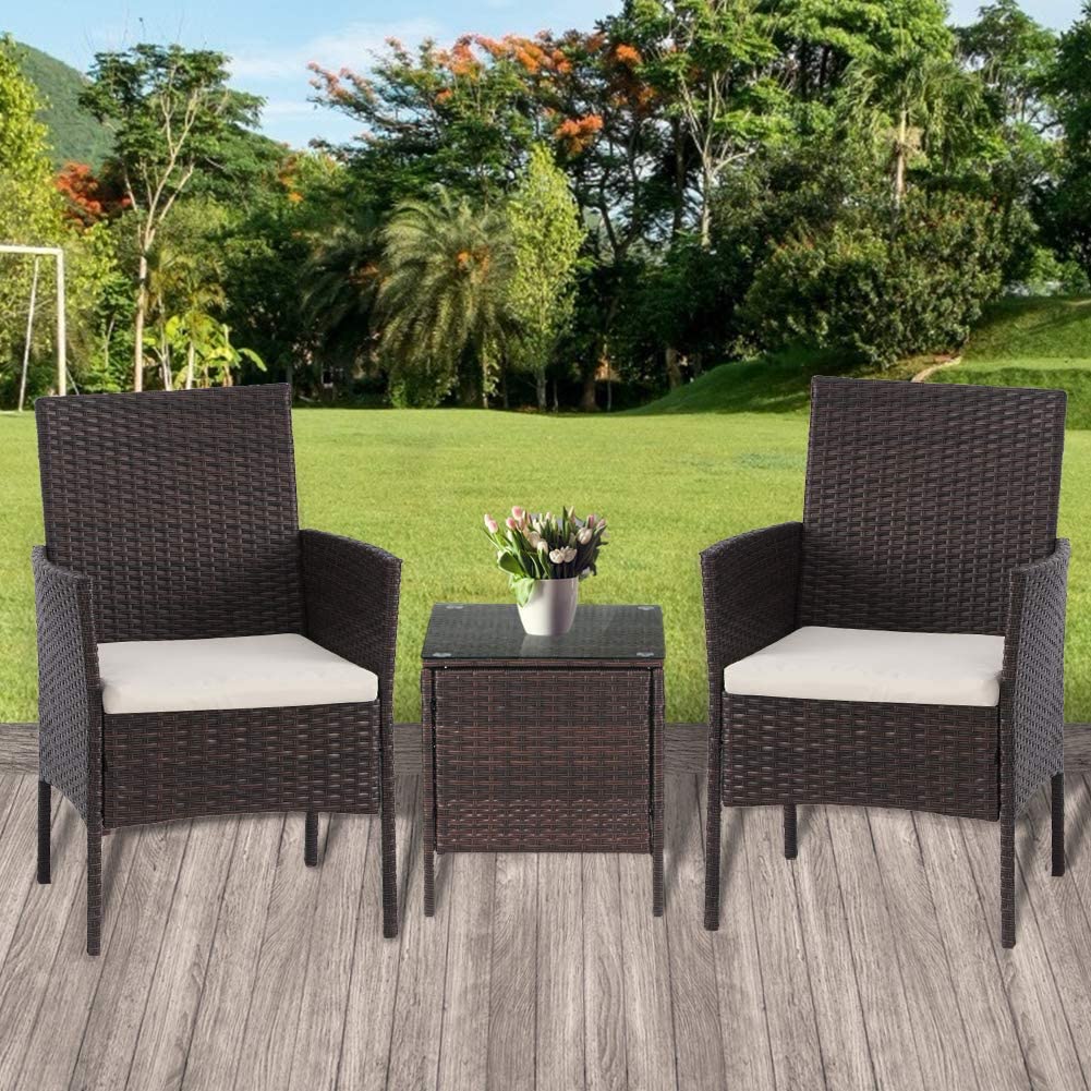 SamyoHome Patio Furniture Cushioned PE Rattan Bistro Chairs Set of 2 with Table, 3 Piece