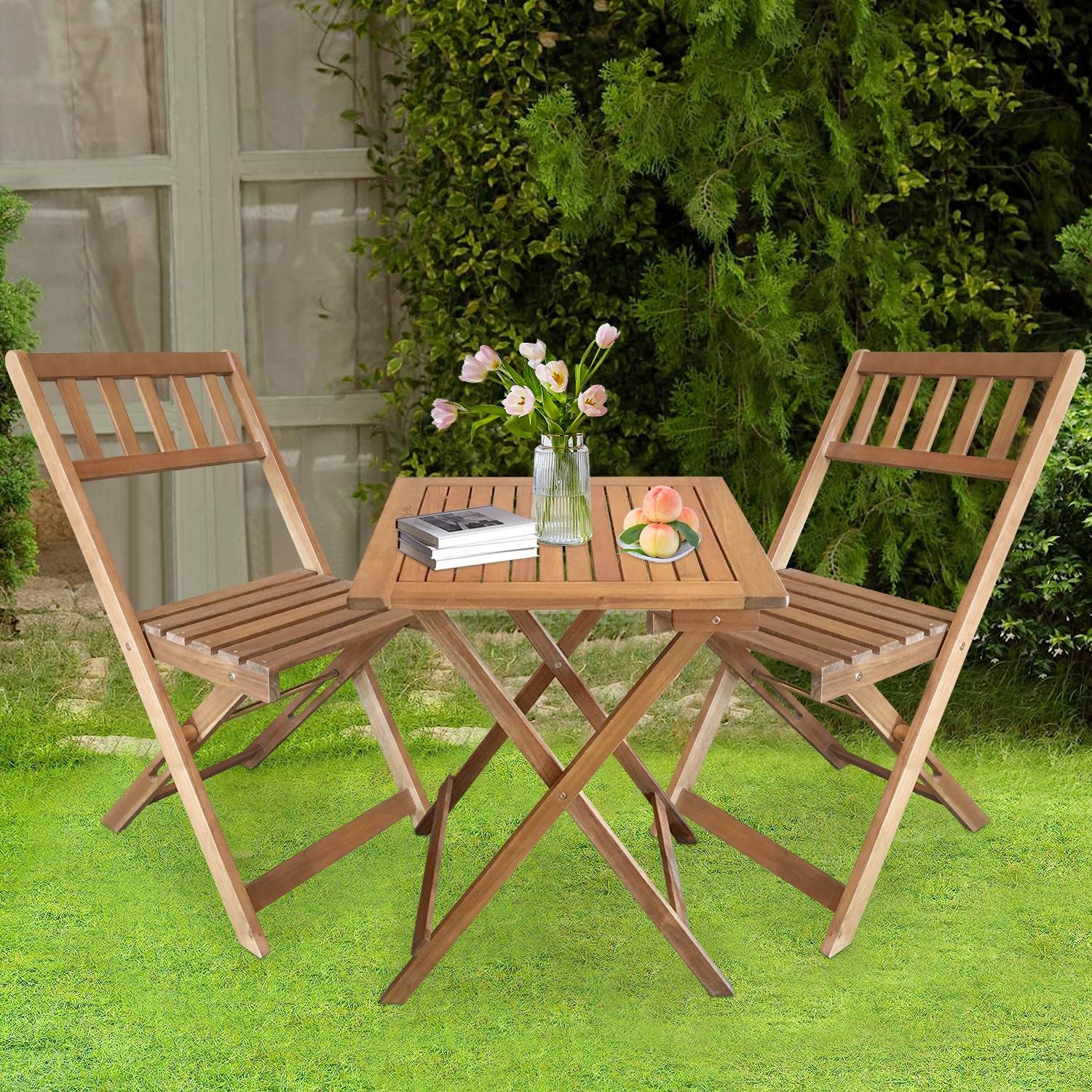 3PC Acacia Wood Patio Bistro SetOutdoor Folding Bistro Set Table and Chairs Set for Pool Beach Backyard Balcony(Natural)