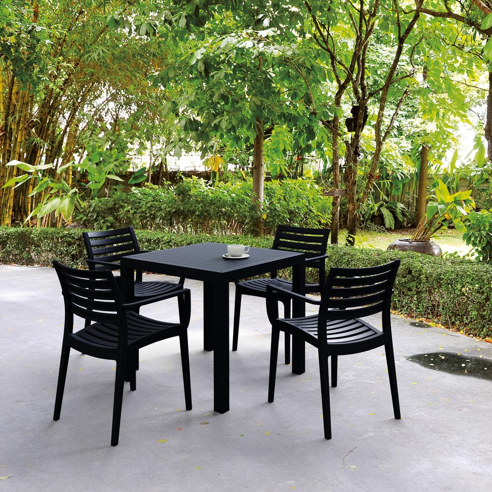 Resin Square Dining Set with 4 Arm Chairs, Black, Belen Kox