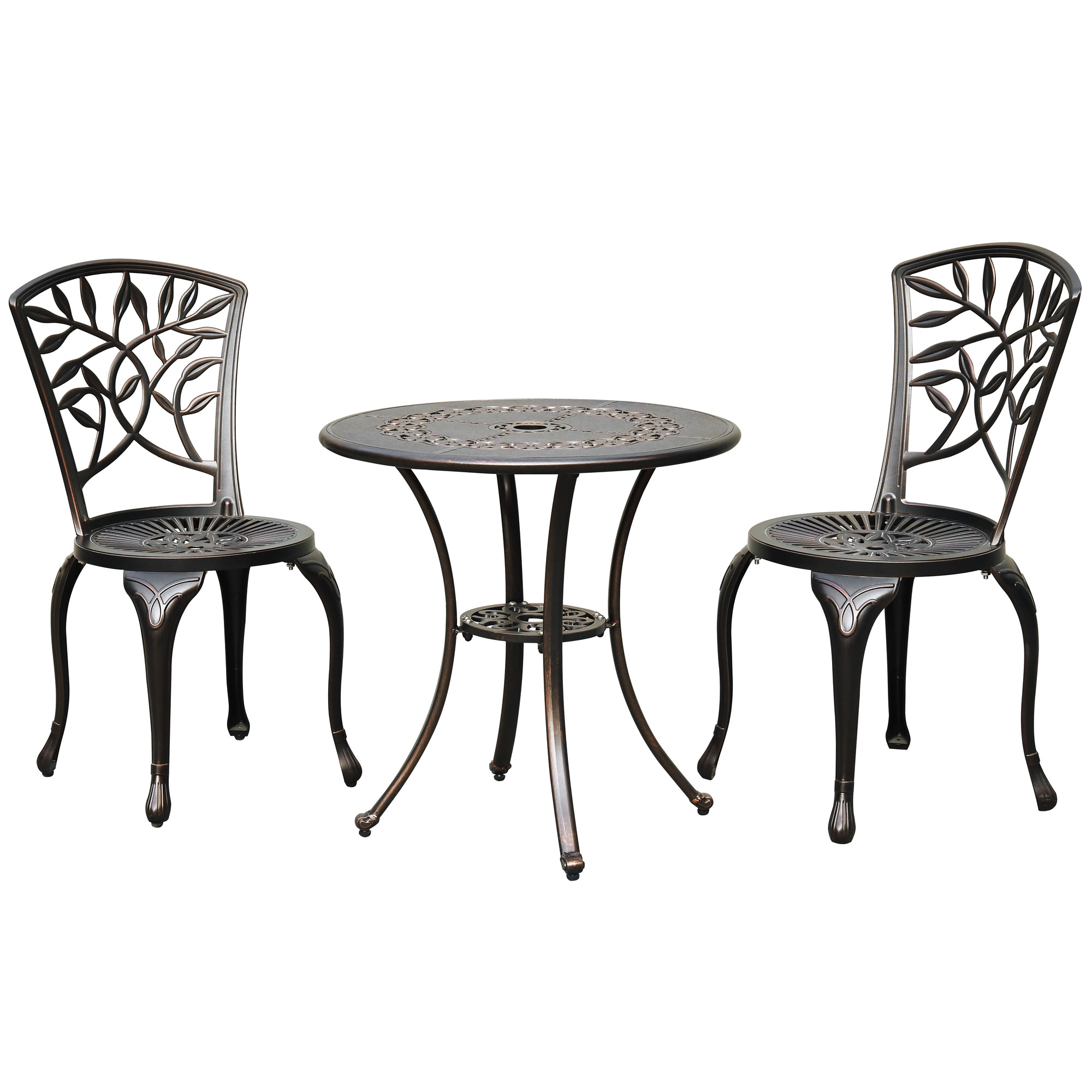 DWVO 3 Piece Cast Aluminum Outdoor Patio Dining Set, Outdoor Patio Bistro Sets with Round Table, 2 Chairs with Adjustable Feet for Balcony, Lawn, Garden, Backyard, Pool, Black