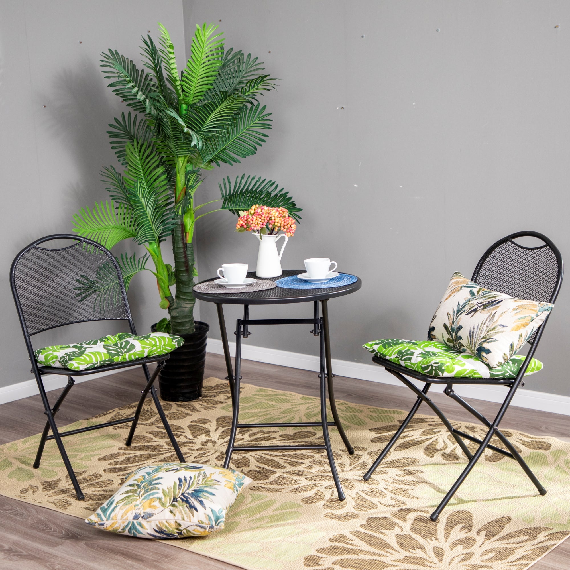Sophia & William 3 Pieces Outdoor Bistro Set Metal Folding Table and Chairs