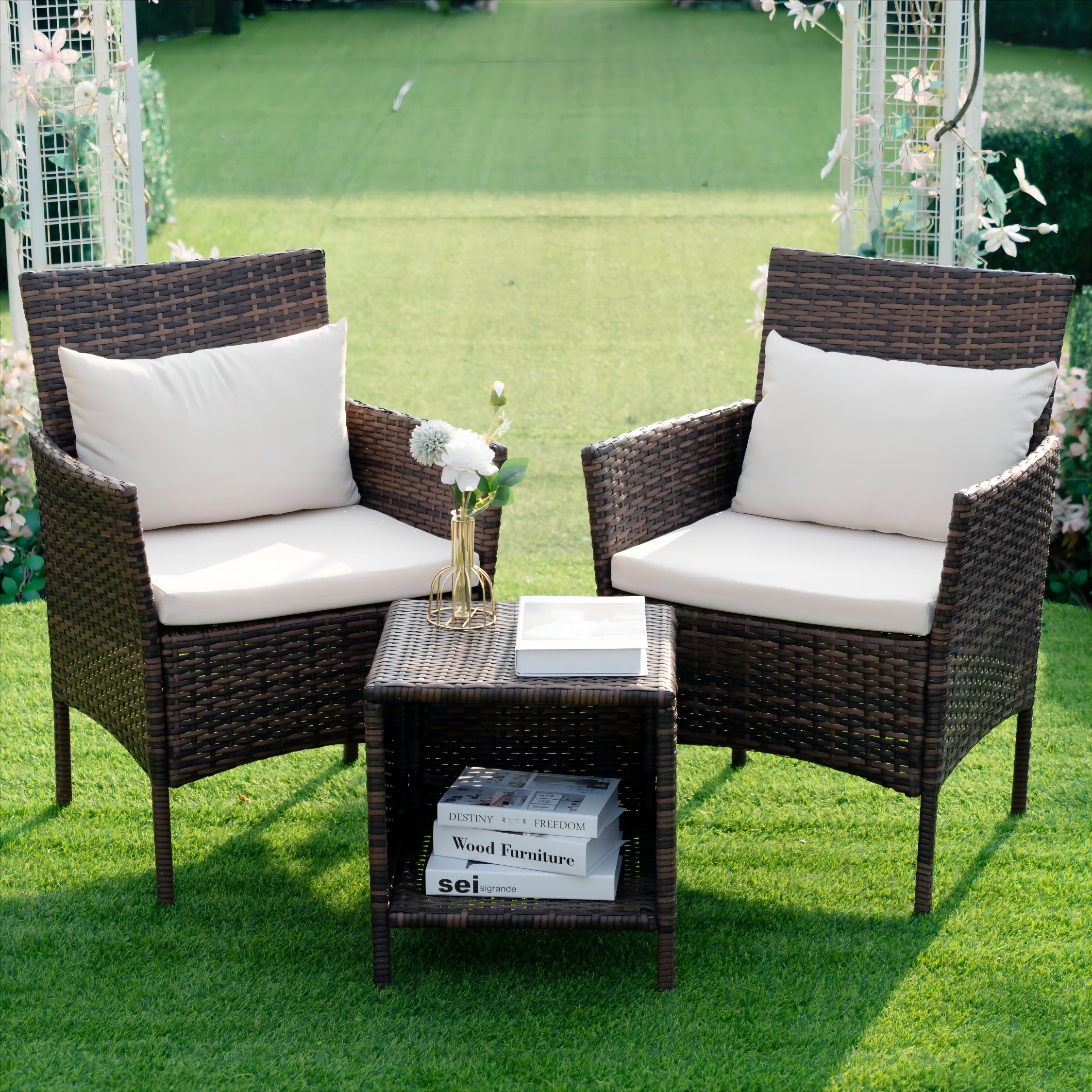 Tappio 3 Piece Patio Conversation Bistro Set Outdoor Chat Furniture, Porch Balcony Furniture Set,Wicker Chairs and Storable Table Set for Patio Balcony Backyard Apartment,Brown/Beige