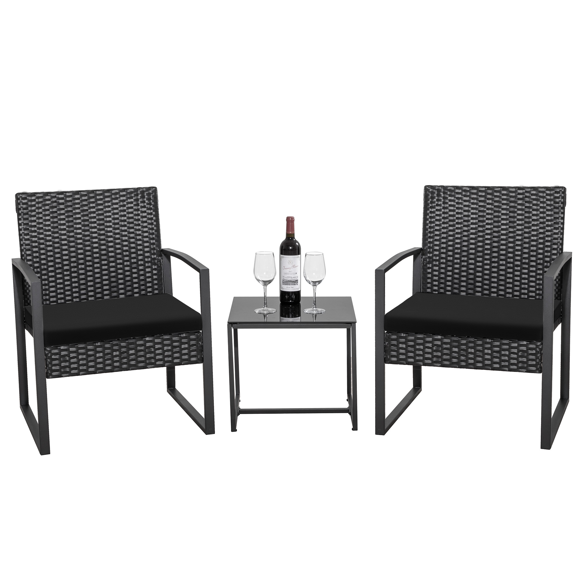 Homall Patio Furniture 3-Piece Set Casual Wicker Chair Bistro Chair with Coffee Table, Black