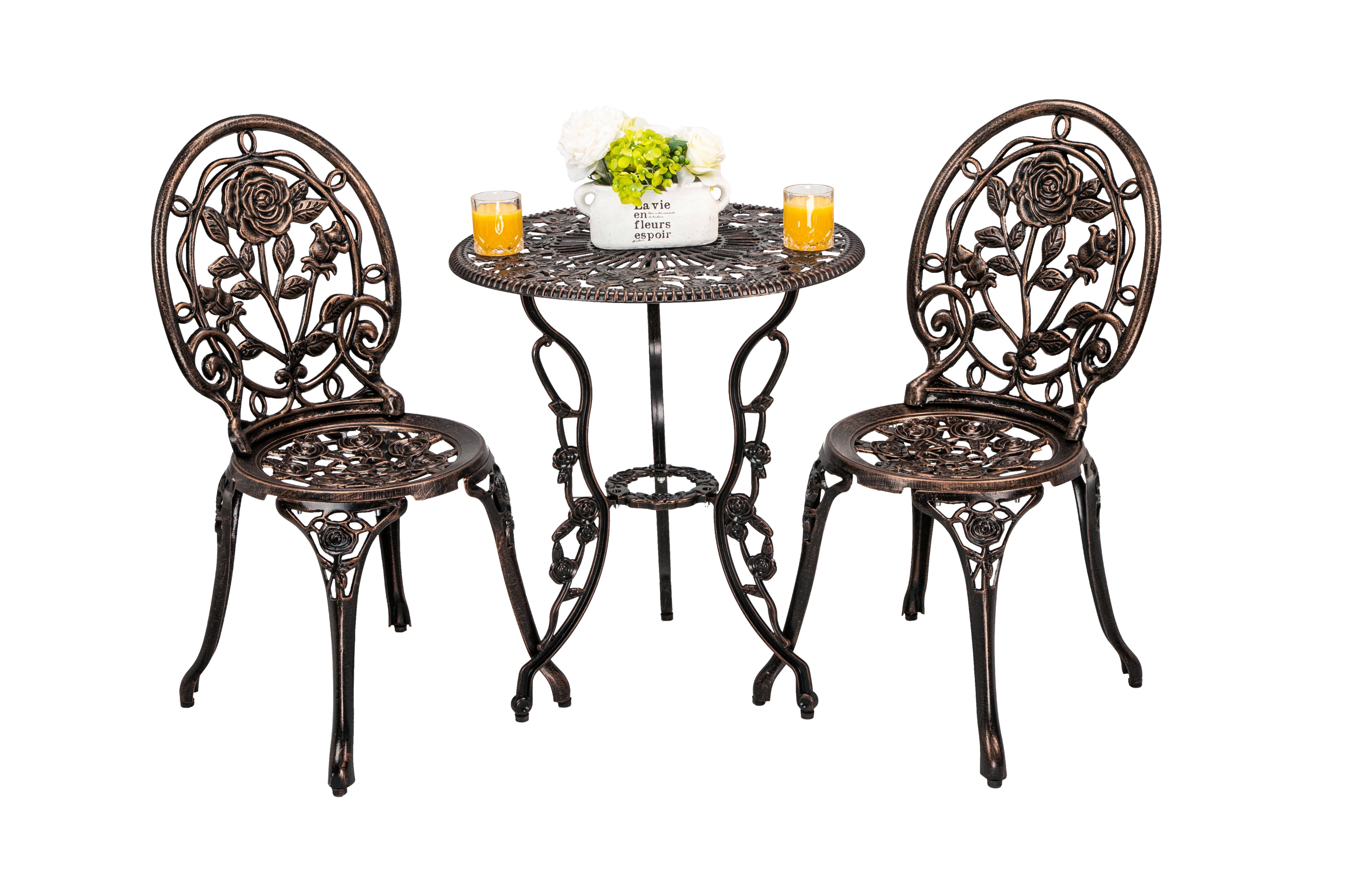 HOMEFUN Bistro Table Set, Antique Bronze Rose 3 Piece, Outdoor Patio Table and Chairs Furniture, Durable Rust Weather Resistance
