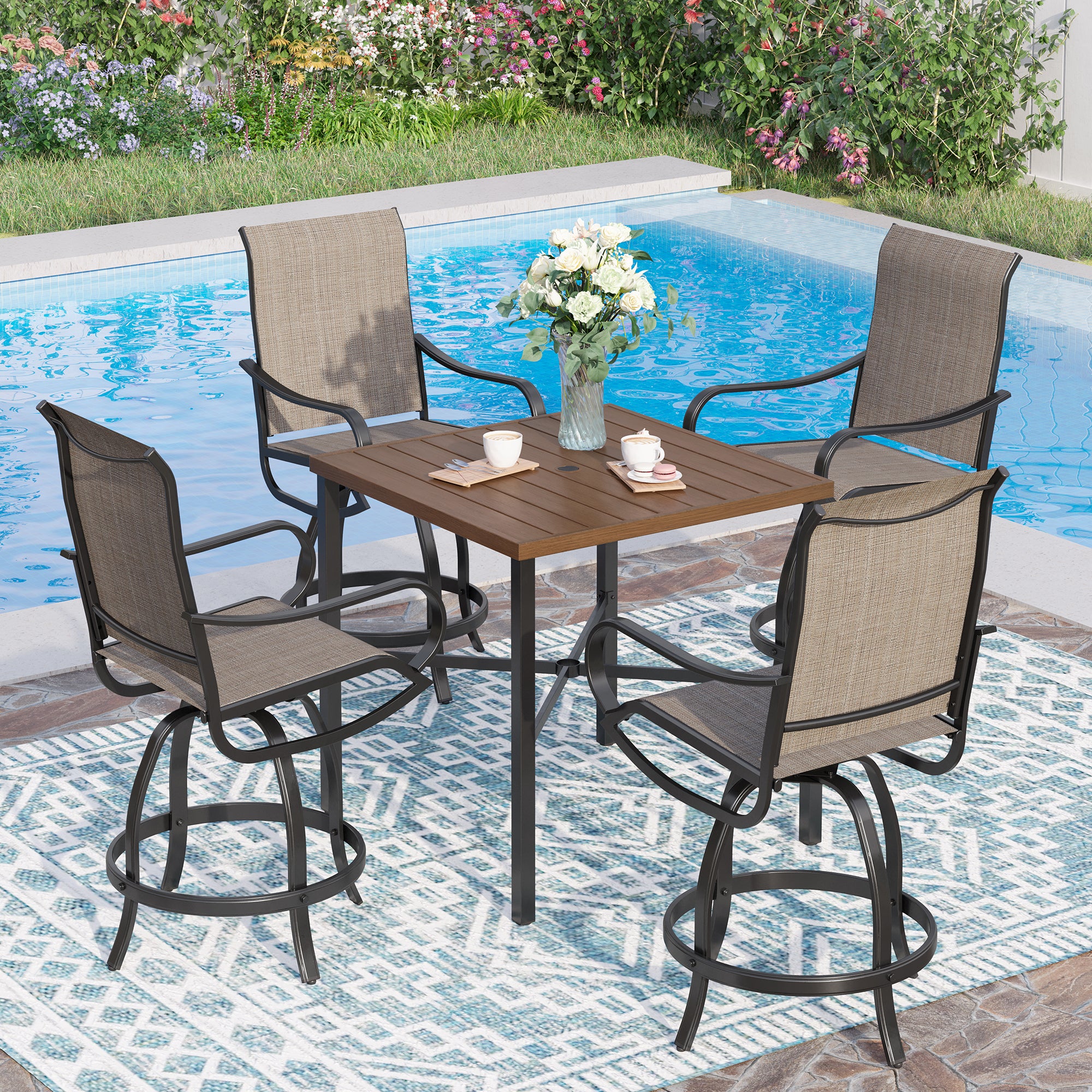 Sophia & William 5 Piece Patio Bar Set Outdoor Furniture Bistro Set with Swivel Chairs and Table
