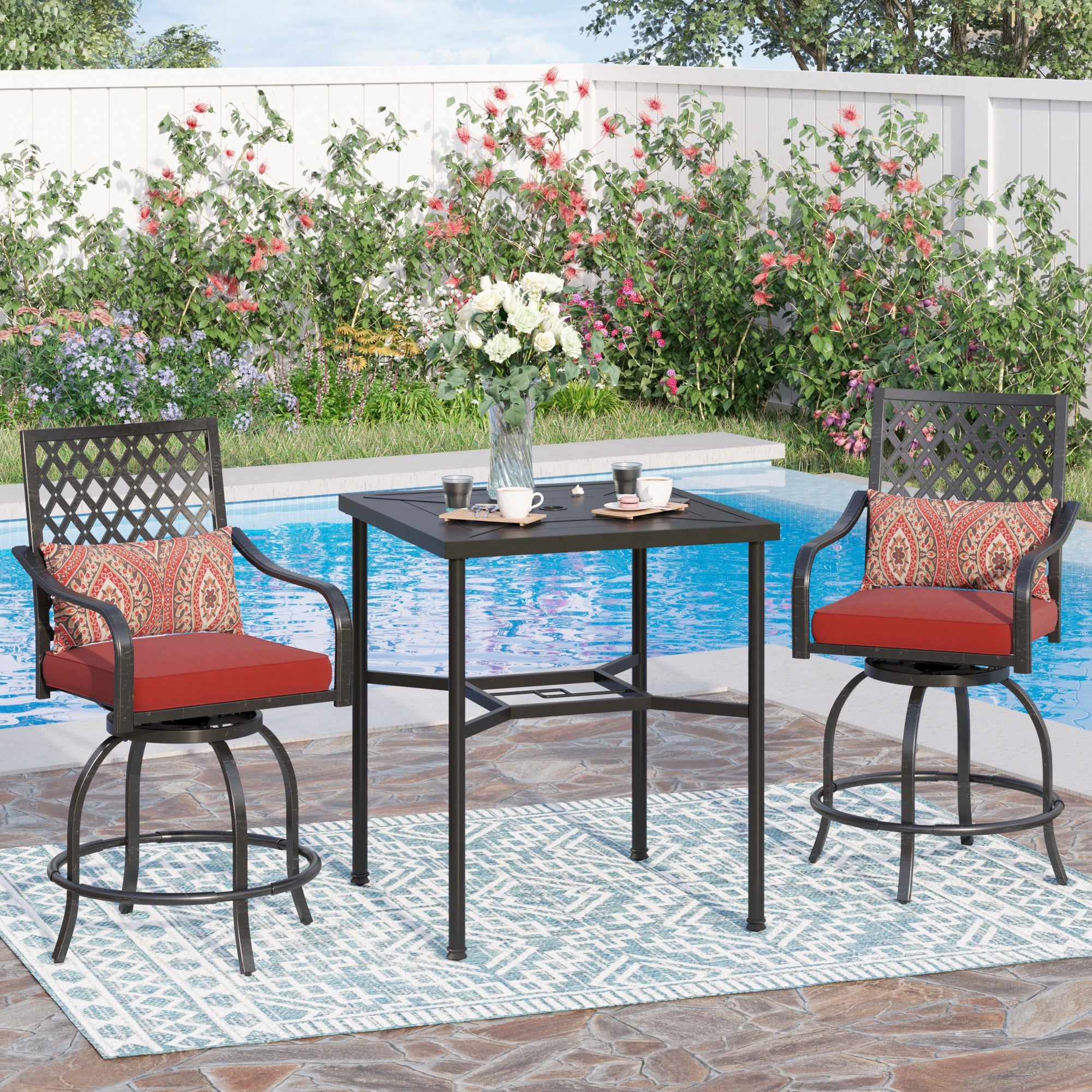 Sophia & William 3 Piece Outdoor Patio Swivel Bar Stools Set Height Bar Table and Chairs Dining Furniture Set