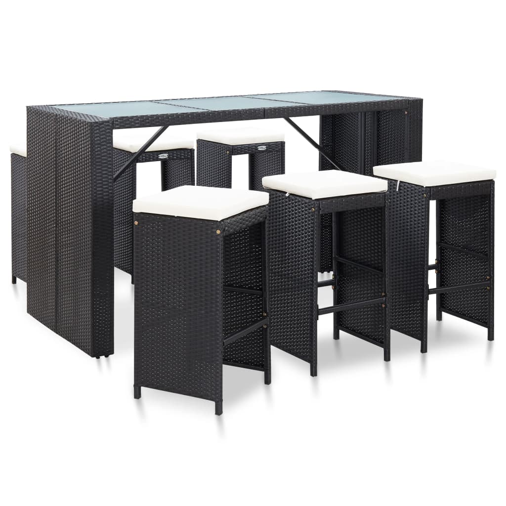 vidaXL Patio Bar Set 7 Piece Outdoor Bar Table and Chairs Poly Rattan Brown