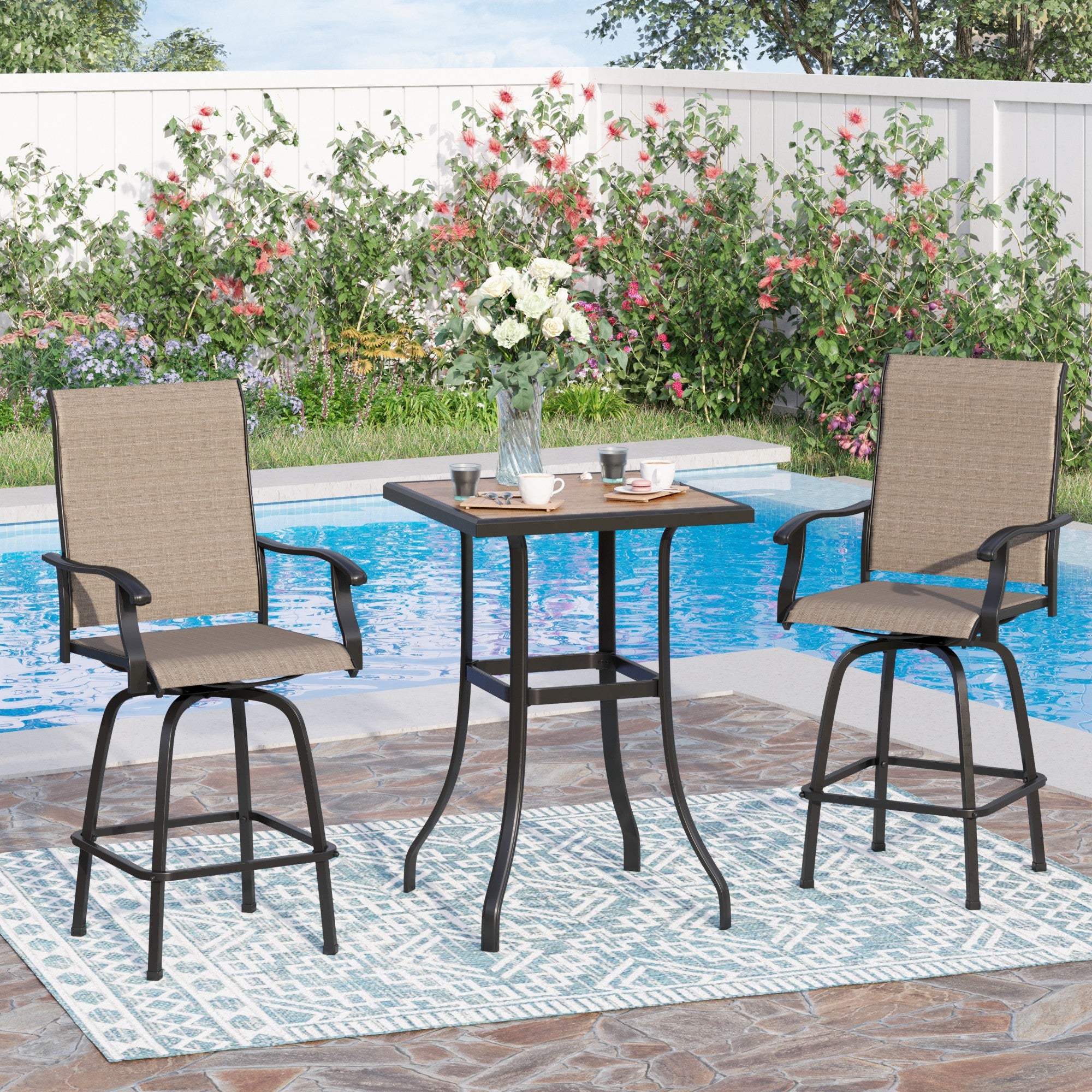 Sophia & William 3 Piece Outdoor Bar Set Patio Bar Height Swivel Chairs and Table Bistro Set