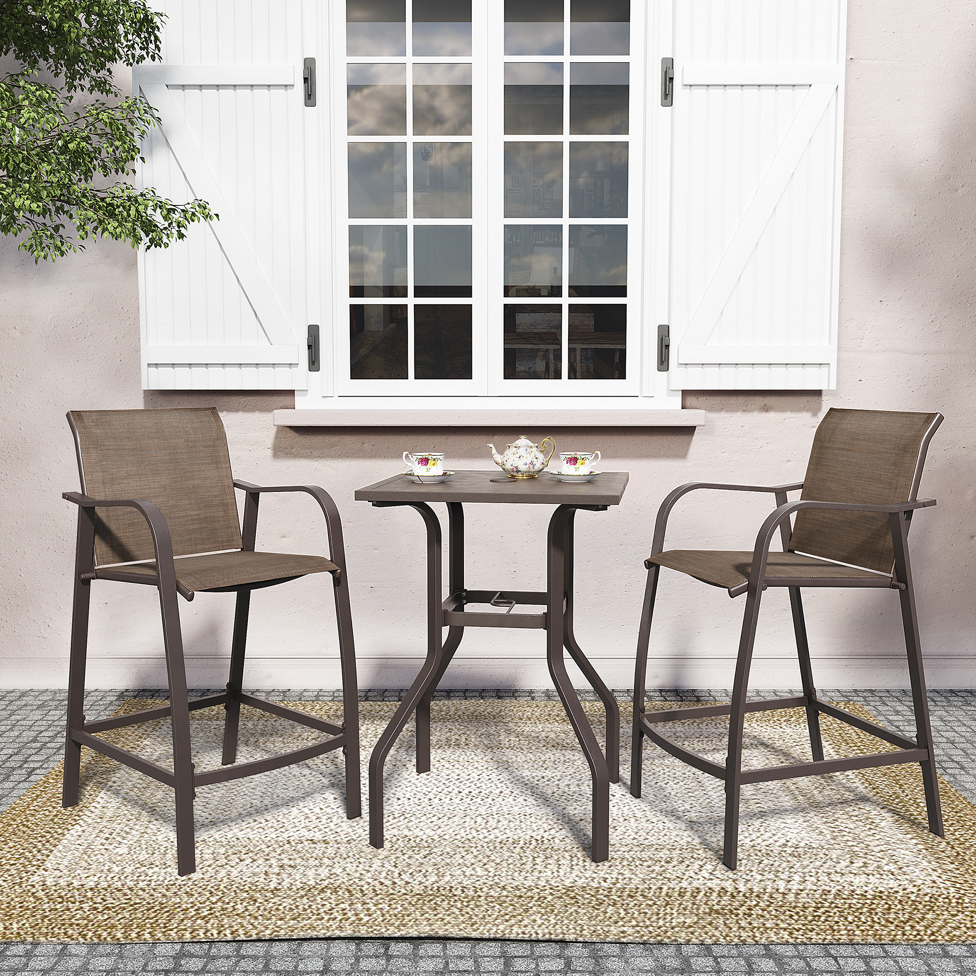 Pellebant Brown Aluminum Chairs Patio Barstools Set 2 Stools &1 Table