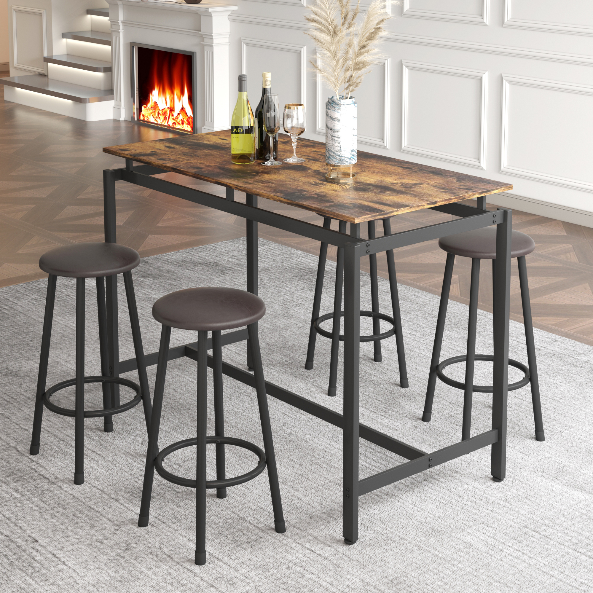 Miniyam Bar Table and Stools, Industrial Counter Height Pub Table with 4 Chairs, Espresso