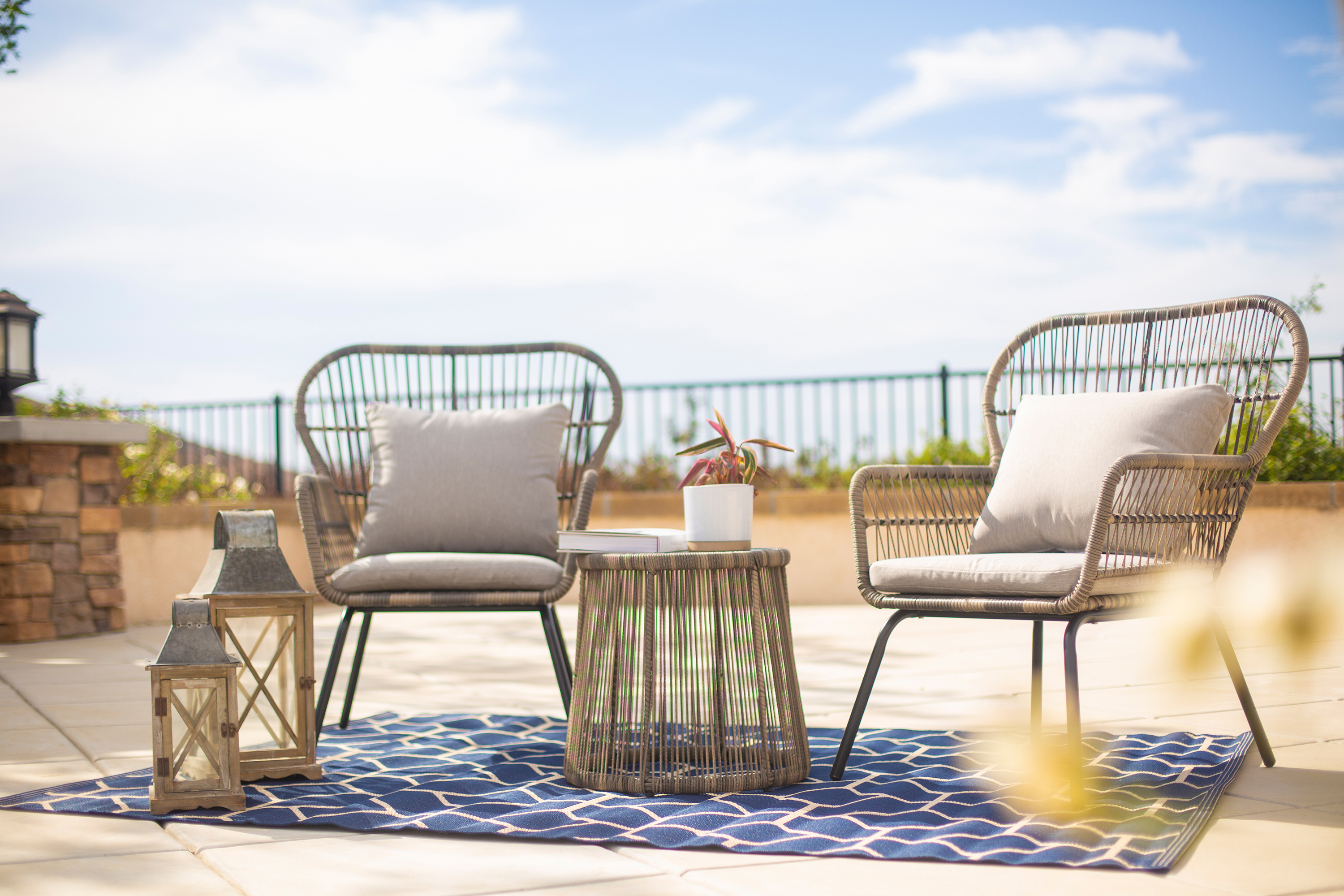 Barton 3 Pieces Outdoor Patio Wicker Chat Conversation Bistro Chairs and Side Table with Cushion Seat